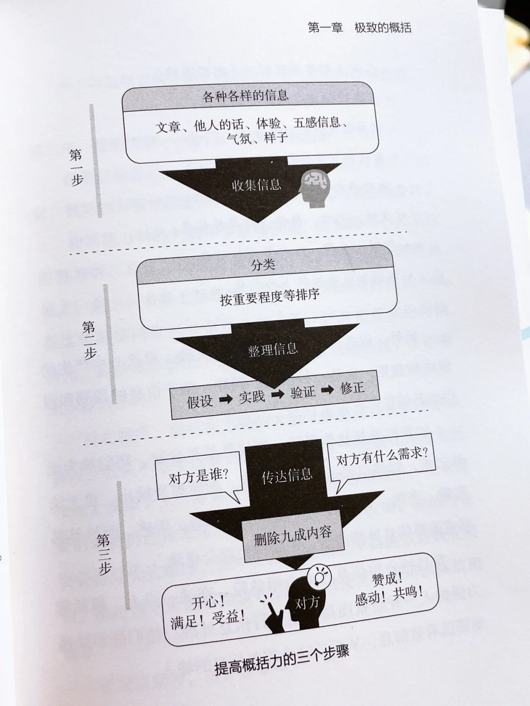 不要说冗长的铺垫词,要详略得当,有条理地传达信息,按照“主干-枝-叶”的顺序去表达。删除掉9成的内容,只留下1成重要的内容。传达信息时要考虑对方是谁,他有什么需求。当我们以“说”或“写”的形式将信息传出去时,能给别人带来帮助,这些信息才会产生价值!