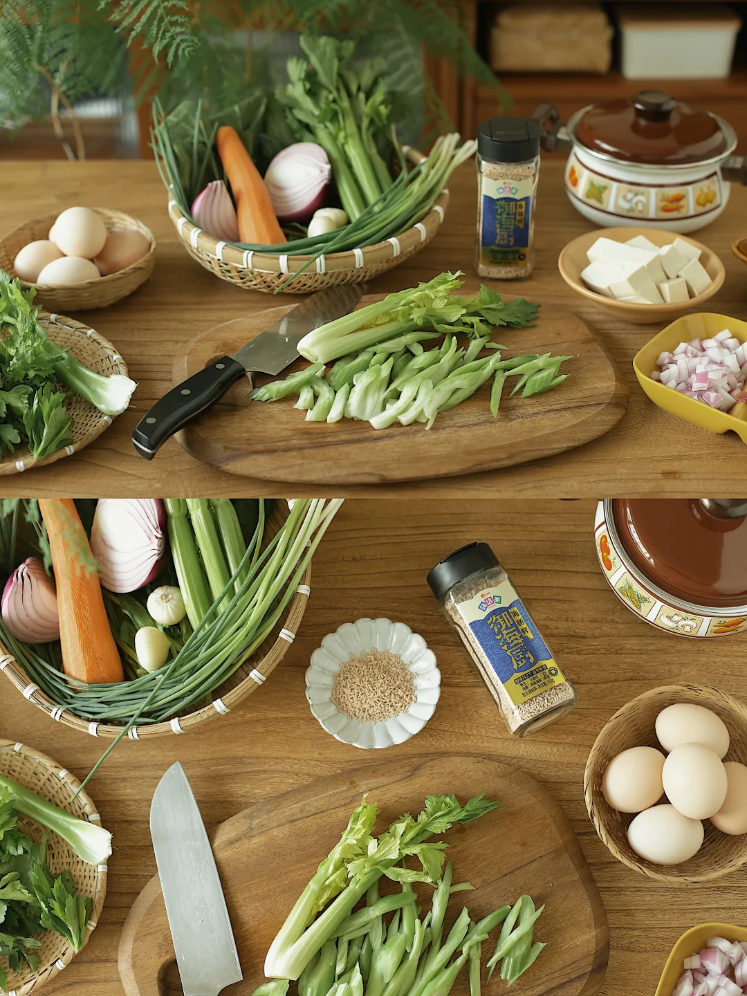 今天的炒饭简单又好吃 自己做炒饭 放多多的肉沫和鸡蛋~ 调味虽然很简单 但是味道一点也不简单! 又香又鲜~ 我用了味达美御海厨海肠鲜提味! 里面添加了山东渤海湾野生海肠粉 都是看的懂的配料 听说古代御厨也是把海肠磨成粉来提鲜的~ 用它替代味精鸡精 天然鲜味 好味道 很喜欢吃炒清芹 用海肠鲜调个简单的料汁 炒一炒 清淡又鲜甜! 还有热乎乎的煎蛋豆腐菠菜汤~ 中式早餐怎么也吃不腻 家常菜清淡饮食就这么吃!