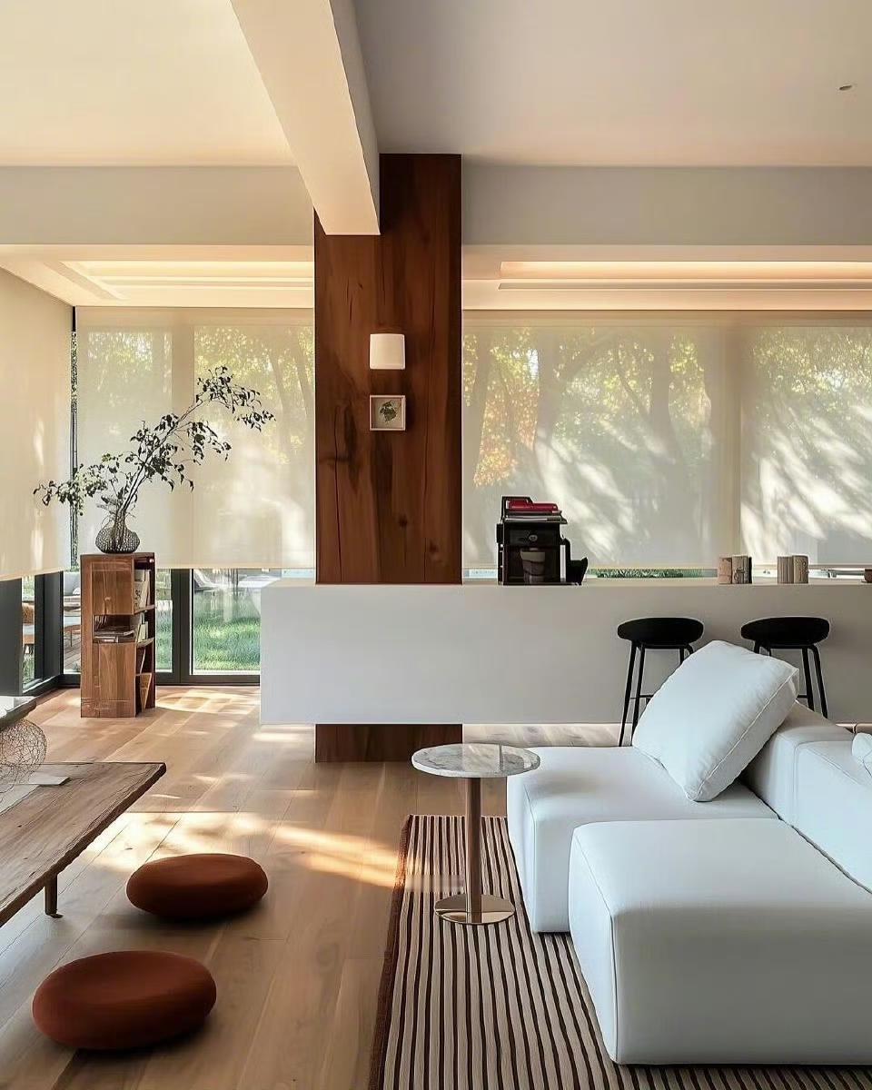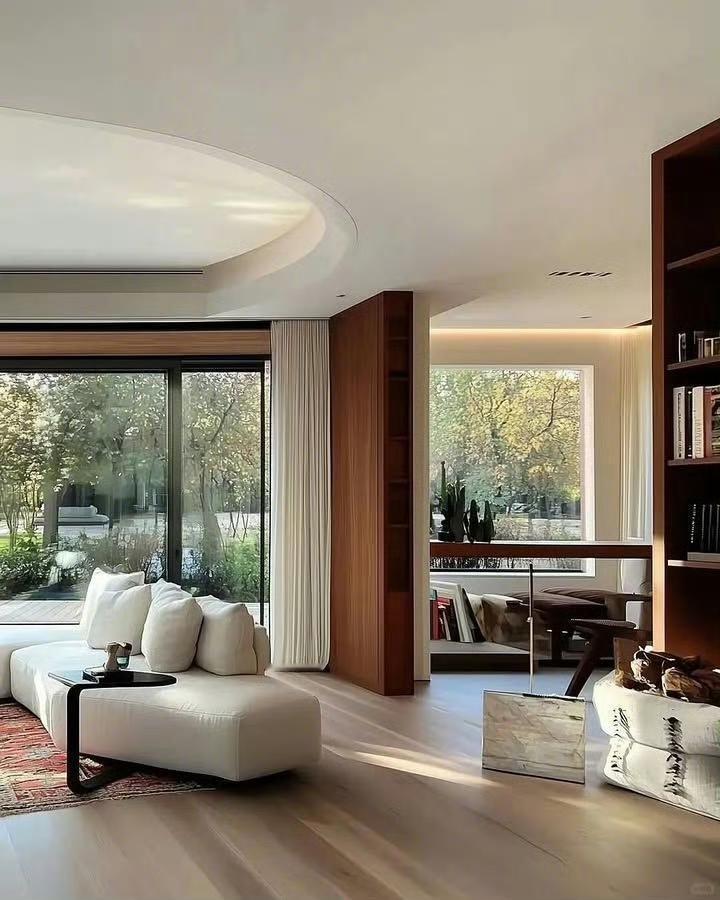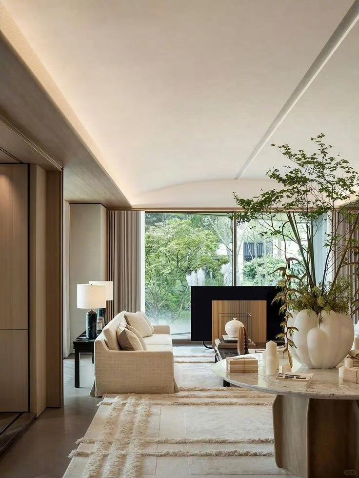 现代简约风客厅真的太绝了!就像我之前看到的一个案例,客厅有一扇超大的落地窗,自然