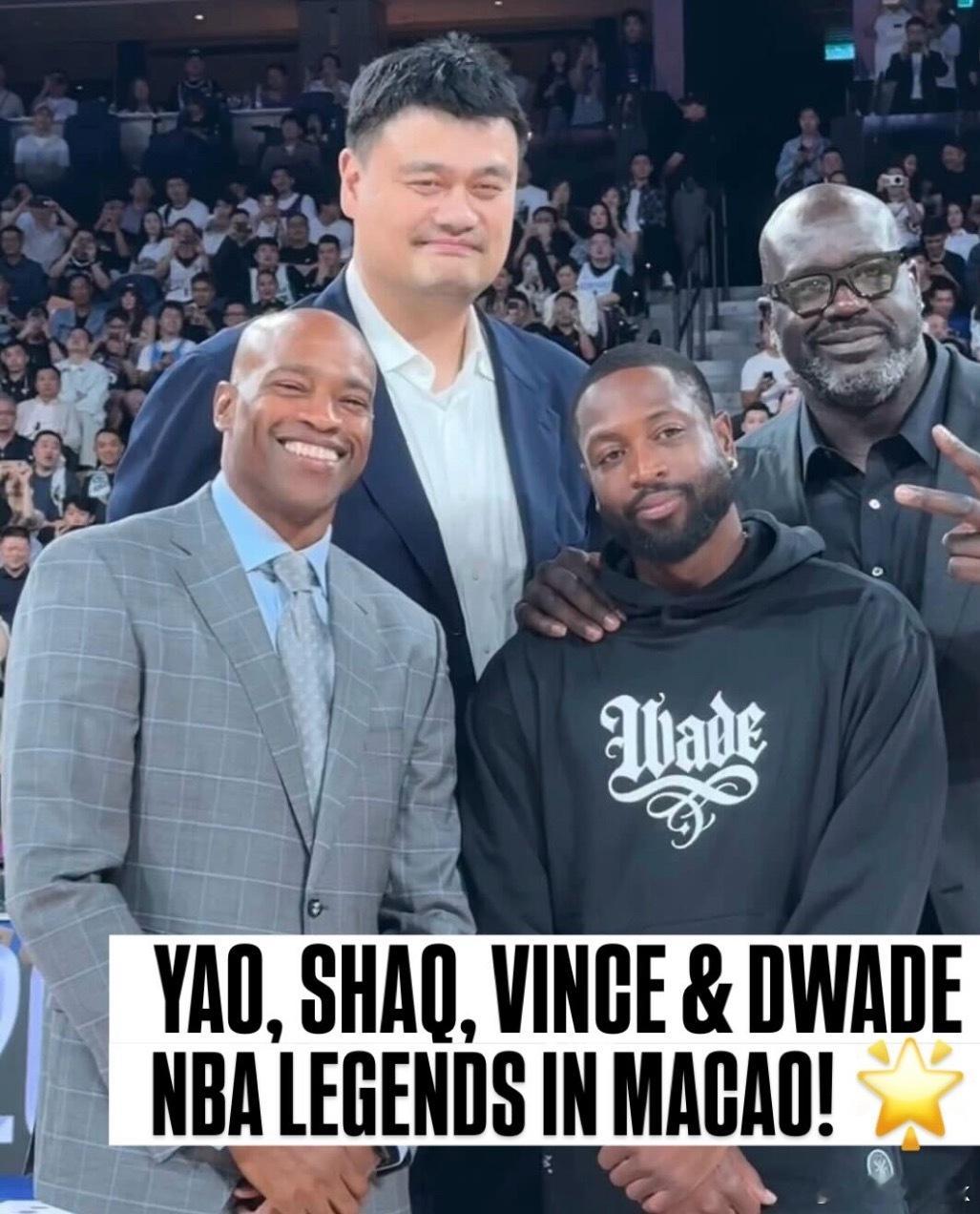 韦德在2025NBA中国赛澳门站,和李宁、姚明、奥尼尔、文斯卡特等人合影NBA中国赛2025新赛季篮不住