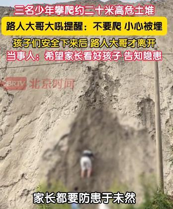 “积了大德了!”10月9日江苏南通,三个小男孩偷偷溜到一个建筑工地,正在沙土坡上玩得正欢,谁也没注意到脚下的沙土已经裂开了一道道口子,危急时刻,一个路过的男子突然大喊:快离开!土要塌了!这一嗓子,算是把三个孩子从鬼门关前拉了回来,网友:工地老板必须得好好感谢男子! 十月的南通还带着点秋老虎的余温,9日午后的阳光晒在城郊那片待建的建筑工地上,堆得近两层楼高的沙土坡泛着浅黄。 三个穿着红蓝白校服的小男孩,背着半旧的书包,不知道什么时候绕开了工地外围半塌的铁皮围挡,正手脚并用地往沙土坡上爬。 最小的那个孩子还扎着两个小揪,爬一步就回头跟同伴喊“你看我爬得多高”,脚下的沙土簌簌往下掉,他却笑得直拍巴掌。 可谁也没低头看,他们踩过的地方,沙土已经裂开了一道道细缝。 就在这时,一个穿着藏青色工装、手里拎着菜袋子的中年男人从工地旁边的小路走过。 他本来正低头看手机里的买菜清单,眼角余光却瞥见了坡上的孩子。 男人脚步猛地顿住,抬头仔细一看,冷汗瞬间就冒了出来。 他是附近小区的居民王师傅,干了十几年建筑活儿,一眼就看出这沙土坡是“外强中干”,孩子再往上爬两步,说不定整个人都会陷进去。 “快离开!土要塌了!”王师傅几乎是吼出来的,声音因为着急有些沙哑,却像惊雷一样炸在工地上。 三个孩子被吓得一哆嗦,最小的那个差点滑下去,还是旁边的同伴拉了他一把。 他们也顾不上玩了,连滚带爬地往下跑,鞋子踩掉了一只都没敢回头捡。 王师傅赶紧跑过去,摸了摸孩子们的头,问“有没有摔着”,直到看到三个孩子都摇头,他才松了口气,顺手帮那个掉了鞋的孩子把鞋捡了回来。 这事拍下来发到网上后,网友们都炸了锅,有人说“这大哥真是积了大德了,晚喊几秒就是另一个结局”。 也有人追问“工地的围挡怎么那么松,孩子随便就能进去?”。 更让人揪心的是,这样的危险不是第一次发生。 2023年国庆期间,河南日报就报道过一起类似的悲剧。 河南某县的一个沙坑里,一名8岁男孩在里面玩耍时,沙坑突然坍塌,男孩被埋在里面。 等消防员赶到把人挖出来时,孩子已经没了呼吸。 当时参与救援的消防员说,沙土坍塌比水泥块危险,一旦被埋,呼吸通道很容易被堵死,救援时间特别紧张。 说起家长的安全教育,很多时候也容易“走形式”。 就像南通这三个孩子的家长,虽然也说过工地危险,但孩子没亲眼见过后果,自然不会放在心上。 还有路人的态度也很关键,王师傅的善意提醒救了三个孩子,但不是所有人都能做到这样。 现在再回头看南通这件事,三个孩子能虎口脱险,确实是“幸运”。 遇到了眼尖心善的王师傅,可这份幸运不能只靠“碰”。 毕竟,每个孩子的安全,都该是家长、管理者、路人一起织起来的“防护网”,少了哪一环都不行。 那句“快离开!土要塌了”,不仅是把三个孩子从鬼门关拉回来的喊声,更是给所有人心头敲的警钟。 儿童安全从不是某个人的事,多份细心、多份善意,才能让每个孩子都能平平安安地长大。 信息来源:北京时间2025-10-10发布视频