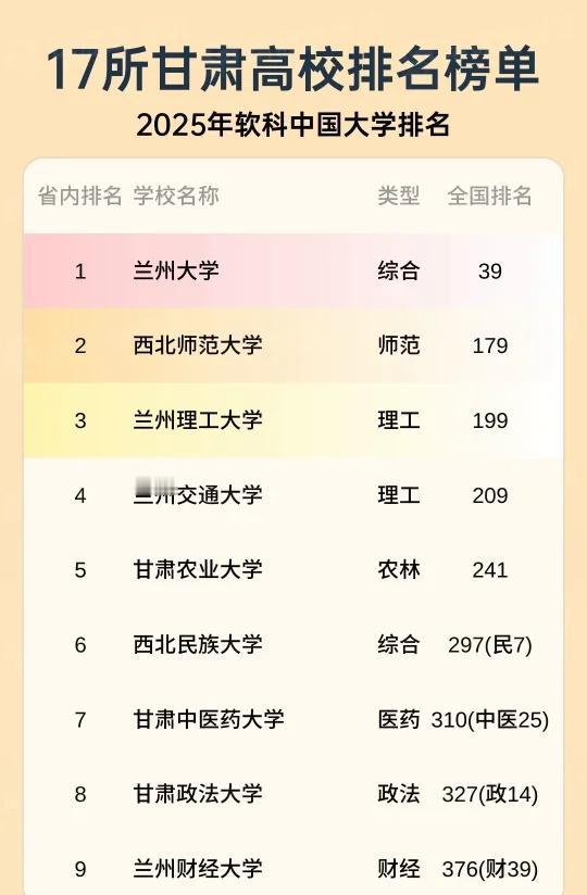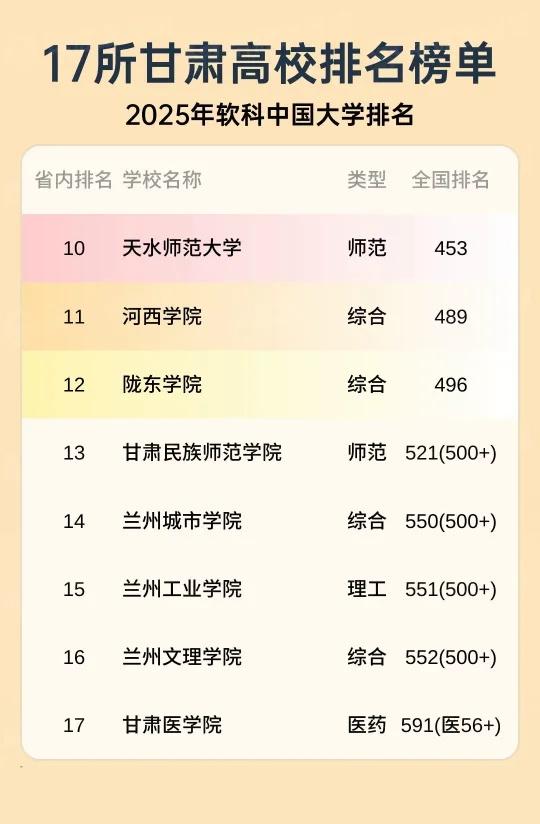 甘肃高校软科排行榜 17所甘肃高校排行榜 高考 考试 志愿 大学 本科 专业 甘