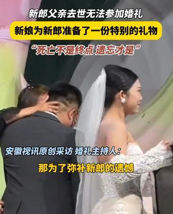 “破防了!”黑龙江,一对新人的婚礼上,新郎的父亲去世无法参加婚礼,可现场主持人却提出一家人站到一起拍一张全家福,正当新郎心里五味杂陈时,新娘突然拿出一个带有新郎爸爸的照片出来,新郎瞬间就哭成了泪人 婚礼进行曲的余韵还飘在黑龙江某酒店的礼堂里,主持人笑着提议“全家人合张影”时,新郎小李的肩膀不自觉地塌了一下。 众所周知,他的父亲半年前刚走,这个本该圆满的瞬间,藏着他最不敢提的遗憾。 可下一秒,新娘小王朝伴娘递了个眼色,一幅装在木框里的画像被轻轻举了起来。 画中穿深蓝色西装的老人笑得慈祥,肩膀处还衬着一对浅色的天使羽翼。 小李盯着画像愣了两秒,突然捂住脸蹲下身,泪水顺着指缝往外涌。 这张让新郎瞬间崩溃的画像,藏着新娘三个月的秘密。 筹备婚礼的那些日子,小王总在深夜看到丈夫对着书房里的遗像发呆,有时翻到父亲送他的大学毕业照,眼泪会悄无声息地打湿照片。 她没说过“别难过”之类的话,只是默默记下了这些瞬间。 距离婚礼还有半个月,她找到主持人,红着眼眶说,我想让叔叔也算‘在场’,哪怕只是一张画。 为了画好这幅像,小王偷偷联系了专业画师,翻出新郎家樟木箱里父亲最精神的老照片。 画师说至少要一个月才能完成,小王怕赶不上,每天都追着看进度,还特意加了“天使羽翼”的细节。 更让人动容的是,她还找宁波一家科技公司做了AI语音复刻,把父亲生前的录音剪成片段,合成了一句祝福,孩子,爸爸永远在你身边。 画像揭开时,这句带着乡音的祝福轻轻响起,新郎的母亲伸手扶住画框,声音沙哑,他要是看见今天,肯定高兴坏了。 现场多位宾客的反应,成了最真实的共鸣。 没人觉得这个环节突兀,反而都被这份心意暖到了。 这段视频传到抖音后,很快收获了百万点赞,有网友留言:“真正的爱不是买多贵的戒指,是记住他没说出口的痛。” 这让人想起安徽一场类似的婚礼,新娘同样手绘了亡父画像,那句“爸虽然不在了,但他肯定想看着你娶媳妇”,也曾看哭无数人。 婚礼结束后,有人问小王怕不怕这个环节太伤感,她笑着摇头,难过是真的,但圆满也是真的。 这句话或许道破了生命最温柔的真相,死亡从不是终点,那些藏在画像里的笑容、语音里的牵挂、记忆里的温度,都会变成照亮前路的光。 信息来源:安徽视讯2025-10-10发布视频