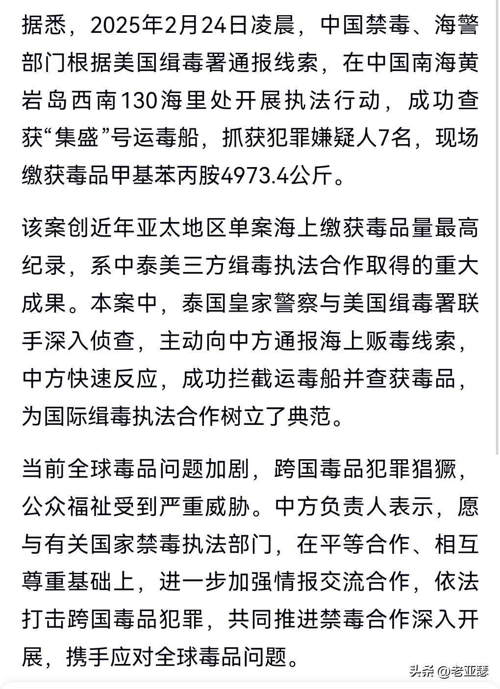 这真是缉毒史上的一次重大的胜利。 中泰美侦破特大毒品案,缴获冰毒近5吨。 竟