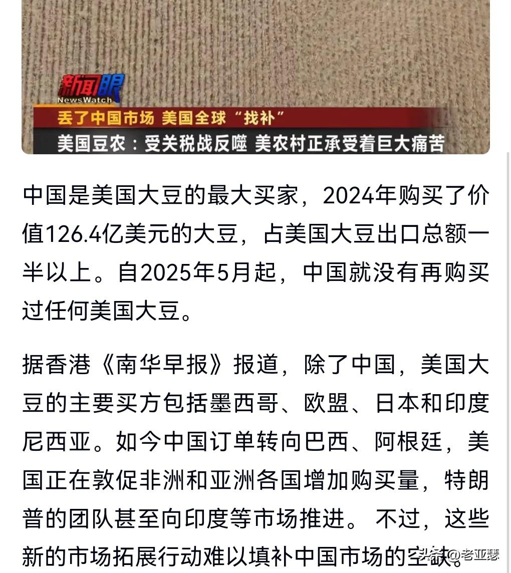 想的太美,这么高的关税,得罪了中国,还想中国买美国的大豆,美国的想法真是太异想天开了。 5月起,中国近半年没买过美国一粒大豆。 就拿2024年来说,中国购买了美国大豆出口额的一半以上。 美国正在寻求非洲亚洲的新买家,但是效果相当的一般。 这就是得罪中国的现场。 特朗普搞经济是不行的。