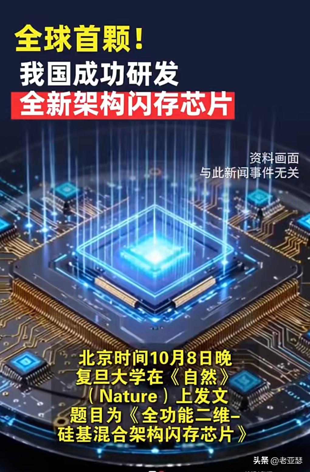 这听着就很让人热血沸腾啊!中国太棒了。 我们以前是懒得开发芯片,但是被美国“卡脖子”之后,我们在这方面终于有了自主创新的意识。 相信以后我们的芯片产业一定能够全方位的领先世界。 10月9日在网上看到一个振奋人心的消息。 全球首颗!中国研发全新架构闪存芯片。 领先全球啊。 太让人自豪了,一定要保持住这种优势。