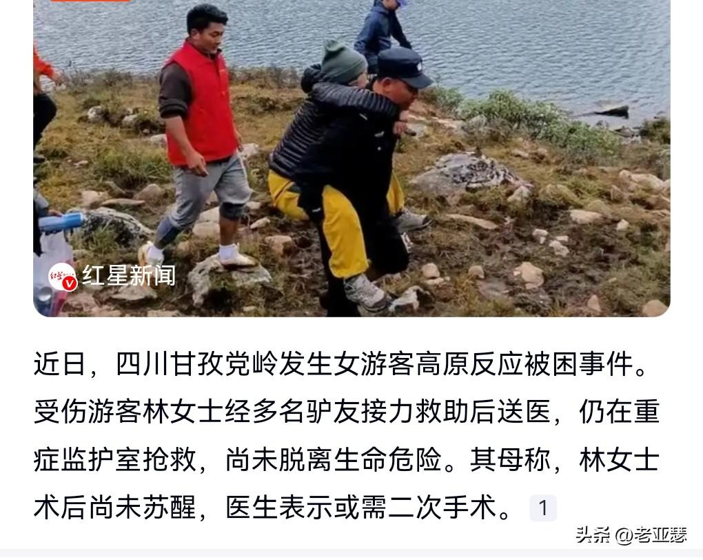 这真的是敲响了警钟啊,一定要小心高反。 出现这样的症状,一定要立即撤离,下山。 近日,一名20岁的女游客出现高反。 甘孜党岭女游客高反获救,仍在ICU,还没脱离生命危险。 这真是太令人担心了,有可能醒,也有可能成为植物人。 所以说一般人就别去徒步大山了,高原反应是非常可怕的。甘孜党岭女游客高反获救 仍在ICU