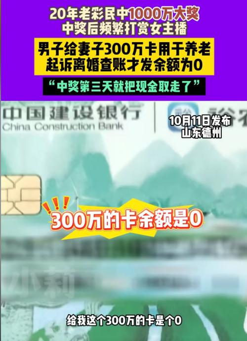 山东一男子花42元买彩票,开奖后得知中了1000多万,男子不喜不躁心生一计,给妻子一张300万卡,男子痴迷给女主播刷火箭,妻子怒其离婚,想着300万够养老了,可看完银行卡里的余额,女子傻眼了! 今天这事真应了一句老话“福兮祸所伏”! 10月11日,据小莉帮忙栏目报道,山东德州一位老彩民花 42 块钱买了一张彩票,开奖后一核对,好家伙,1017 万的大奖砸头上了! 按国家规定,扣完税后实打实到手 814 万多。这笔钱要是好好规划,普通人家这辈子基本能踏踏实实地过,不用再为柴米油盐愁眉苦脸,可他倒好,从拿到钱的那一刻起,就没打算好好过日子,真是拿着金饭碗往沟里扔。 中奖第三天,转头就给妻子苑女士办了张银行卡,拍着胸脯说:“这里面存了 300 万,专门留着给咱俩养老,你好好收着,啥也别操心。” 苑女士那会儿还挺感动,觉得丈夫是个靠谱的,没白跟他过这些年,压根没往别处想,更没去查卡里到底有没有钱, 毕竟夫妻一场。 可打从中奖之后,丈夫整个人就像变了个人似的。以前虽说普通,但家里的事儿还上心,现在倒好,整夜整夜不睡觉,抱着手机跟个宝贝似的,屏幕里全是美女主播的直播画面。 苑女士慢慢就察觉不对劲了:家里开销没见多,丈夫却总说手头紧;问起那笔养老钱,要么支支吾吾,要么就急着岔开话题,嘴里没一句实在话。更让她寒心的是,有一次丈夫说出去办事,一去就是四天,她特意去车站接人,结果好家伙,居然看见丈夫和一个女主播一块进出,那亲密劲儿,明眼人一看就知道不对劲,根本藏不住。 信任这东西,就跟玻璃似的,一旦有了裂痕,再怎么粘也回不到原来的样子。看着丈夫对主播比对家里人还上心,苑女士彻底死了心,当场就提出了离婚。 这时候她心里还存着一丝念想:就算人留不住,那 300 万养老钱总能保住,以后自己过日子也有个依靠,不至于两手空空。可等到离婚手续办得差不多,她拿着那张丈夫给的银行卡去银行查账,柜台里工作人员的一句话,让她当场就懵了 —— 卡里余额是 0,从头至尾就没存过钱! 你说这事儿气人不气人?那些直播间里的主播,一口一个 “大哥” 地哄着,PK 的时候喊一句 “救命”,他就眼都不眨地刷几千块的 “花海”“秘境”,一晚上最多能花几万块,就为了那点虚拟的排面和主播的几句虚情假意的感谢,真是被猪油蒙了心! 后来妻子通过媒体帮忙,找到了那位主播,人家倒也说实话,我们主播就是靠榜一大哥刷礼物,至于男女朋友关系,才不会找比我大的,还那么老的。 这句话算是彻底让丈夫看清了现实。 截止发稿前,事情还没有一个结果。 看完这个视频,我们从3个方面解析: 问题1:苑女士丈夫中得的 814 万奖金属于个人财产还是夫妻共同财产? 《民法典》规定:夫妻在婚姻关系存续期间所得的继承或者受赠的财产,除明确归一方外,为夫妻共同财产。 本案中,苑女士丈夫中奖发生在婚姻存续期,且彩票奖金未明确约定归个人,因此 814 万奖金属于夫妻共同财产,并非他一人能随意支配。 问题2:苑女士能否以丈夫挥霍共同财产为由,在离婚时要求其少分财产? 《民法典》婚姻家庭编司法解释(二)规定:夫妻一方未经同意用共同财产打赏,数额远超家庭消费水平,可认定为挥霍,离婚时另一方可请求其少分或不分。 苑女士丈夫瞒着她把共同财产打赏主播,远超普通家庭消费,苑女士可提交打赏记录等证据,主张其少分财产。 问题3:若能证明丈夫与主播有暧昧行为,苑女士能否要求主播返还打赏款项? 《民法典》规定:违背公序良俗的民事法律行为无效。 苑女士丈夫与主播有同出同入的亲密行为,若能收集到暧昧聊天记录等证据,可证明打赏违背公序良俗,有权起诉要求主播返还相应打赏款项。 有人说:“这哪是中奖,分明是中了魔障!”42 块钱换回来的不是福气,是彻头彻尾的背叛。更多人替苑女士不值:“从头到尾就是骗局啊,这男人心里根本没这个家,连养老的幌子都敢拿出来骗,真是没良心!” 还有人戳破了本质:“钱真是照妖镜,没中奖时藏得好好的,一有钱立马露出原形,啥本性都藏不住了。” 最让大家揪心的是:“现在婚也离了,钱也没了,这大姐以后日子可咋过?能不能把钱追回来啊?” 这事最让人唏嘘的,不是钱没了,而是那份从一开始就藏着的坏心思。没中奖的时候,俩人还能踏踏实实地过日子,互相扶持;一有了钱,先想到的不是怎么把日子过好,让一家人都舒心,而是怎么骗老婆、怎么给主播刷钱,真是应了 “人心不足蛇吞象”。 到最后才明白,能跟你踏实过日子的人,比任何大奖都金贵;能守住本心,不被金钱冲昏头脑的人,才配得上真正的幸运。 信息来源: 小莉帮忙 10月11日,山东德州,1000万彩票大奖让家庭突发变故