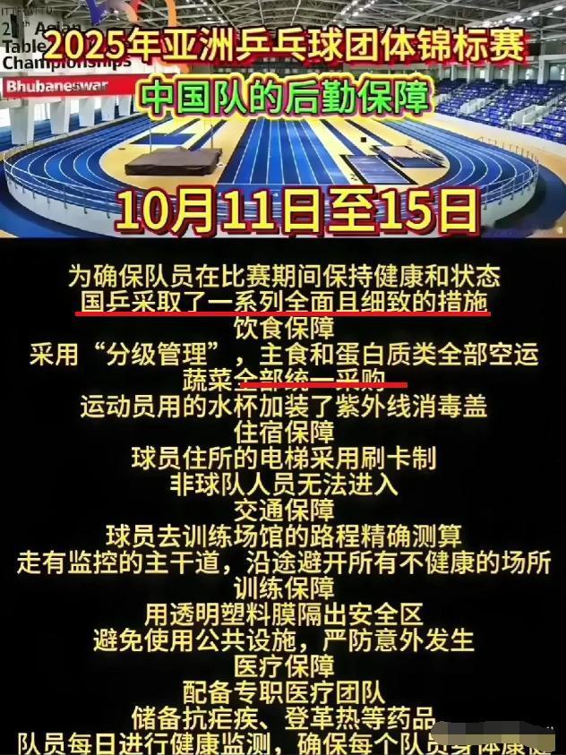 之前还担心国乒球员在印度的饮食健康和安全,看了中国代表团的举措后放心了,几乎所有
