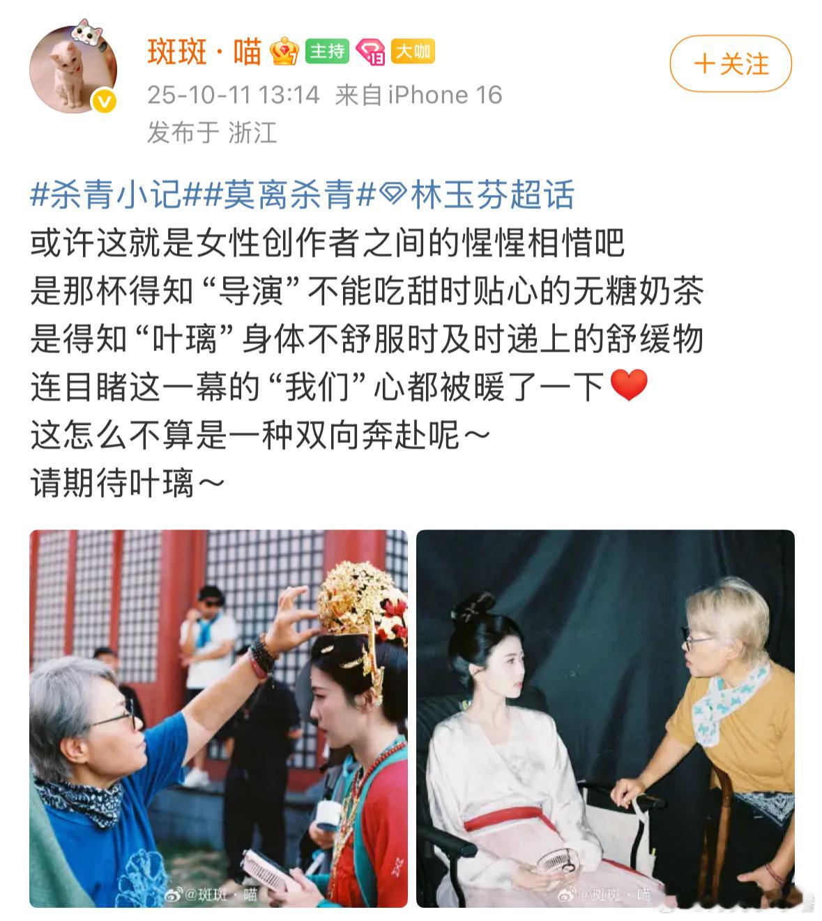 3️⃣导演林玉芬老师的工作人员杀青发的 知道导演不能吃甜专门准备无糖奶茶 而林玉芬导演也会照顾白鹿 “女性创作者之间的惺惺相惜”