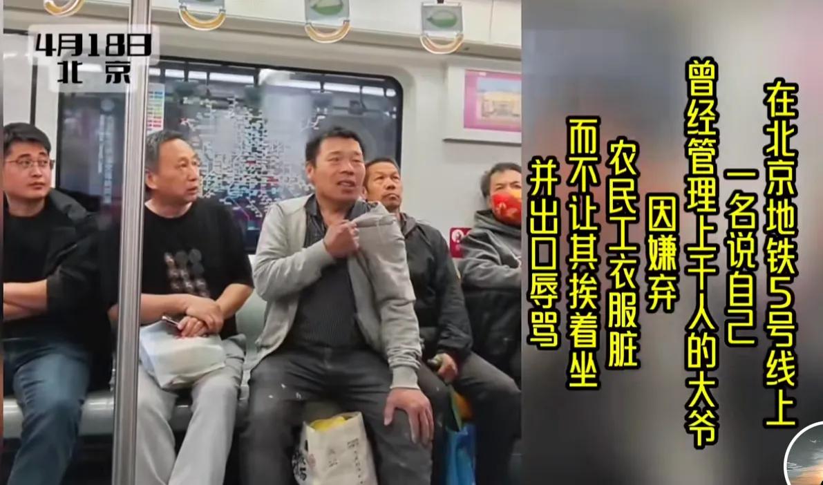 地铁上,为农民工打抱不平的小姐姐,真的美炸了,她的一个举动能够让农民工大叔温暖好久。 4月19日,北京地铁5号线,一位北京大爷嫌弃坐在旁边的农民工脏,出言羞辱,看到这一幕真的很心酸,城市建设离不开每一个辛苦付出的人,无关职业,当着那么多人被骂,农民工大叔大概会很难过吧。 这位大爷高高在上,声称自己管过一千多人,指责农民工大叔穿着脏衣服乱挤。 农民工不卑不亢,跟他理论,其实,农民工大叔很有素质,他怕弄脏座椅,已经尽量往前坐了。 就算是这样,北京大爷也不满意,甚至更加过分,说脏话骂人,就连旁边的人都觉得大爷没素质,纷纷替农民工大叔发声。 这时,一位漂亮的小姐姐站出来,指责北京大爷,为农民工大叔鸣不平,随后一个举动更是让人竖起大拇指。 姑娘说,我不嫌脏,我坐他身边,她坐下的那一刻,被大爷气疯的网友只剩下感动,尤其农民工大叔,心里肯定暖极了。 还是好人多,小姐姐不仅长得漂亮,还很善良,希望她的单位和朋友都能看到那个视频,表扬闪闪发光的她。 其实这件事,最脏的是北京大爷,穿的干净心里却很黑暗,不是看不起人嘛,这下好了,直接被行拘。