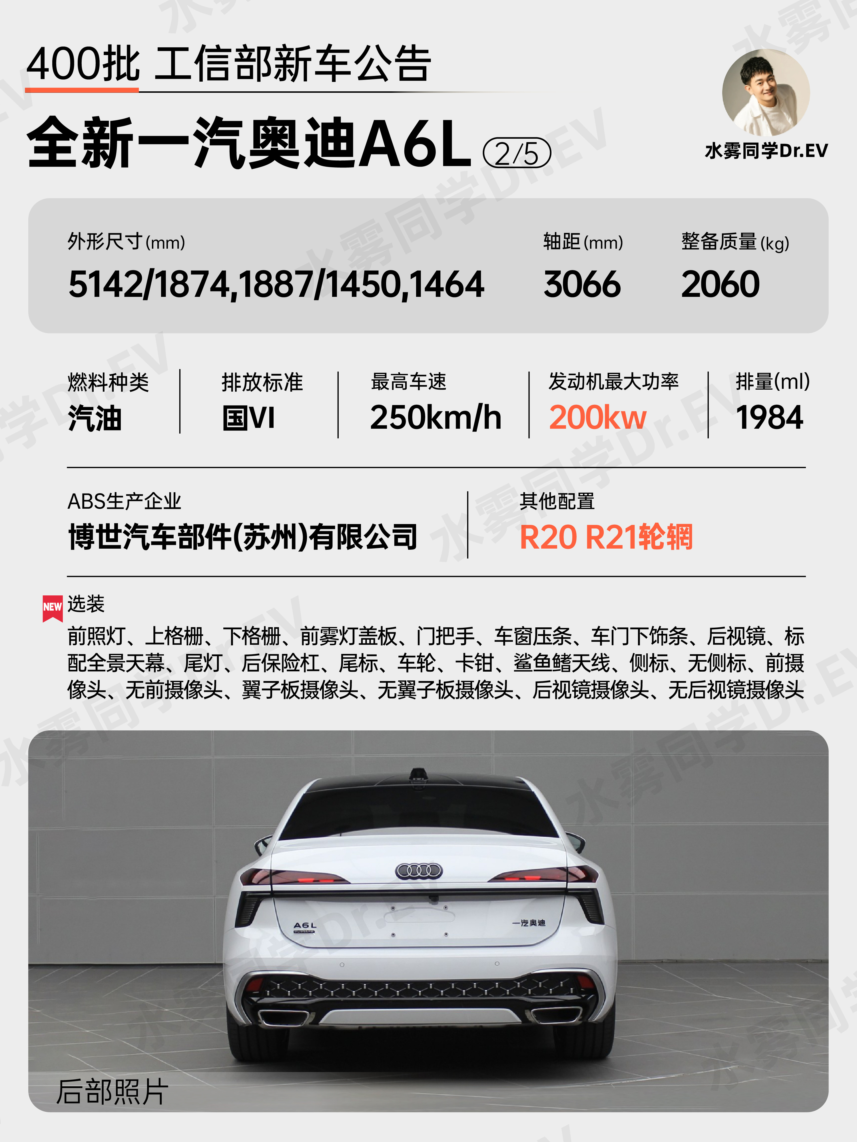 🔥第400批工信部新车公告里,全新一汽奥迪A6L登场!
