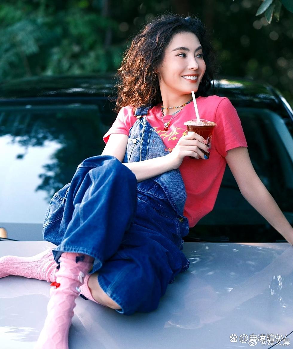 张柏芝才是真·不老女神!中年穿粉色T恤仍满是少女感,笑起来无皱纹,泡面头也猜不出年龄。