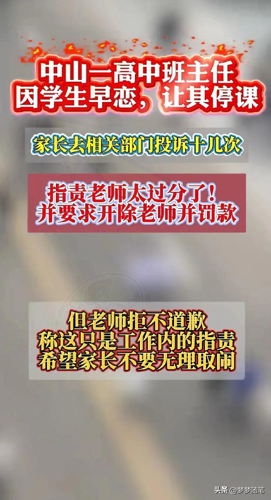 中山市某校高中班主任,因学生早恋,让其停课。家长去相关部门投诉多次,指责老师做法过分,并要求开除老师。 老师硬气不道歉,两边都不让步,看着都头大。 有人说高中不是义务教育,校规就得遵守,屡教不改就该回家。 但也别忽略了,教育部规则里说了,停课得是情节严重、影响恶劣的情况,还得提前告知家长。 青春期有好感本是正常的,上来就停课,也太“一刀切”了。 教育哪是简单的“要么听我的,要么滚蛋”?老师的初衷或许是好的,但比起直接停课,不如好好聊聊,给孩子立好边界。家长光投诉也没用,得跟学校一起想办法。 你觉得这事儿里,老师和家长谁更占理?换成你会咋解决?评论区说说!