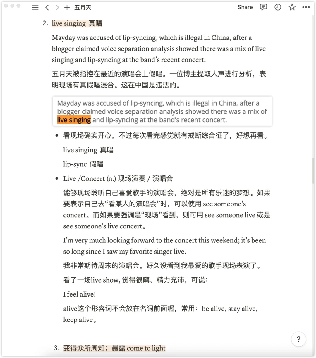 3. 真假唱混合 a mix of live singing and lip-syncing