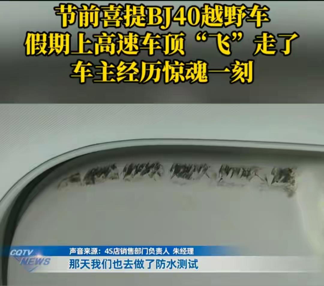 看标题这车质量真差!看见BJ40,得了这车主真sb!BJ40是可拆卸式的天窗,自己不扣紧还怪车企了