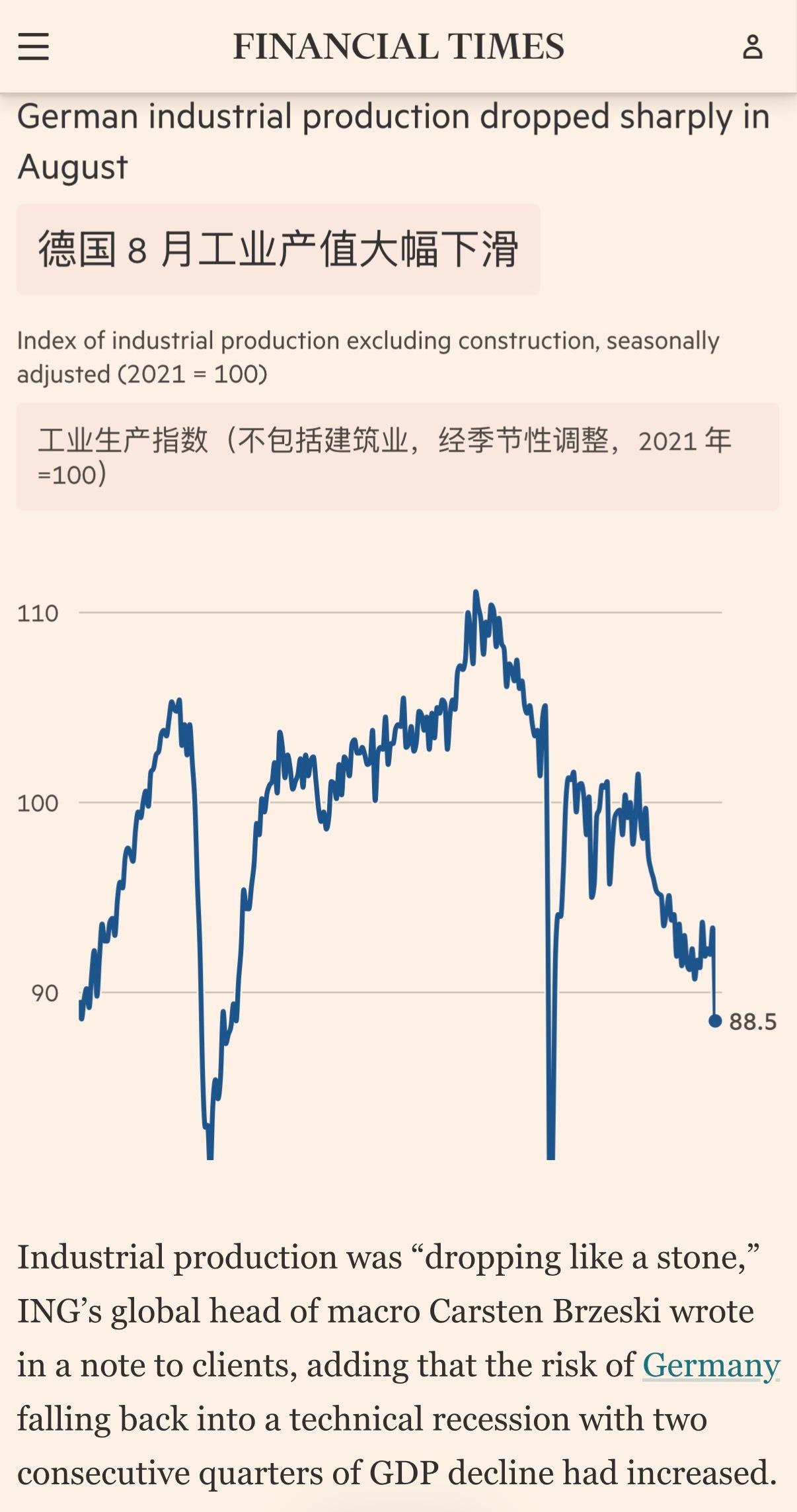金融时报发文:直言德国工业产出实力,回落至2005年的水平,德国至关重要的汽车行业,产量较之前也出现下滑趋势!目前德国也都是落后产能,有中国生产汽车,哪里还需要本土产业,德国应该充分拥抱全球化,进行资源优化配置,德国人就生产好自家的香肠和啤酒,就完事了。一万根香肠换一台电车,这才是全球化时代的应有之义。 德国没有制造业回流计划,因为能源问题,工业缺了能源,电力不够,啥工业都得嘎了。德国的工业,以前靠的是俄罗斯的廉价能源。现在俄的能源没了,美国的能源又贵,而且和管道的运输量根本比不了,工业没法维持规模,没钱导致技术工人都跑了。 德国白左本质上就是回归中世纪封建主义,只讲政治正确。相比之下,资本主义也算是解放生产力的先进制度,毕竟资本主义的本质是赚钱。德国白左只要正确,不要钱,反俄不要廉价能源,反中不要商品市场,挺乌白白把钱送给人家,去工业化就拆厂房和发电站。 德国工业的衰落,就是从北溪管道被炸开始。从此以后,德国再也没有了便宜的天然气能源,从此德国本土就不适合再发展需要大量能源的工业。也许德国的汽车业,还能继续存在,但是德国的化工企业和其他能源企业,就只能远走他乡,因为德国现在的能源价格太高了,没有俄罗斯的便宜能源,德国就失去了继续发展大工业的基础。 但是德国也是有苦难言,如果此时再和俄罗斯走得太近的话,德国自己也是兜不住的,所以不管怎么说,德国这一次局势,远超自己的想象,工业衰落已经成为事实。 不过德国也有自己的办法,那就是发展军事工业。后续德国将会打造欧洲最强大的常规部队,也将装备最多的军事工厂,开始进入的扩军备战。这也是因祸得福,如果德国没有工业失衡的话,就不可能进行大规模的重装。 所以不管怎么说,德国都算是因祸得福,有利就有弊,这是必然的。没有俄乌冲突,德国就不会松绑,还将继续被控制,现在德国已经松绑,所以损失工业,也就成为了必然。