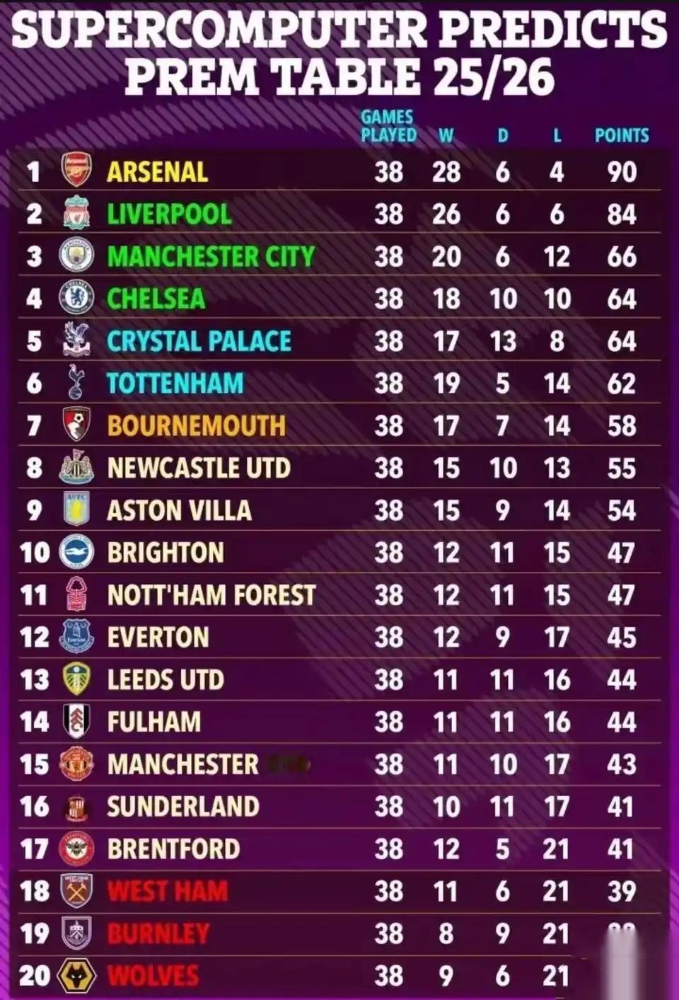 属于阿森纳的时代终于来了! 超级计算机预测,英超最终积分榜,阿森纳90分拿冠军,利物浦只有84分。 超级计算机还预测,阿森纳18%概率拿欧冠,这是目前众多豪门里排第一的。 又是英超,又是欧冠,阿森纳球迷不敢想呀。 问为什么,阿森纳防守强,只要正常进攻,拿到双冠,阿尔特塔将是阿森纳的教父![赞]