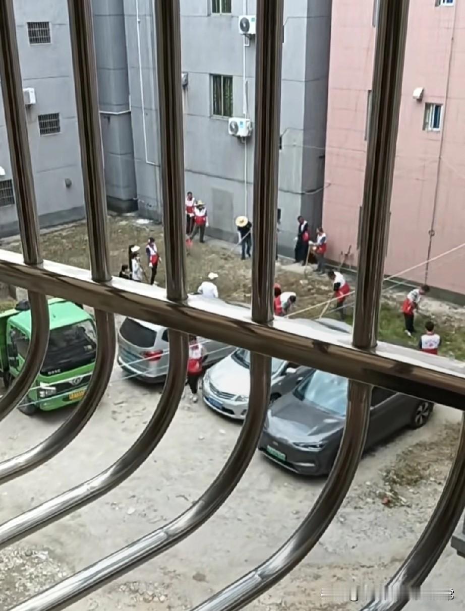 起床干活啦!全民爱国卫生运动 推开窗就被楼下这阵仗惊到!红马甲大军扎进小区空