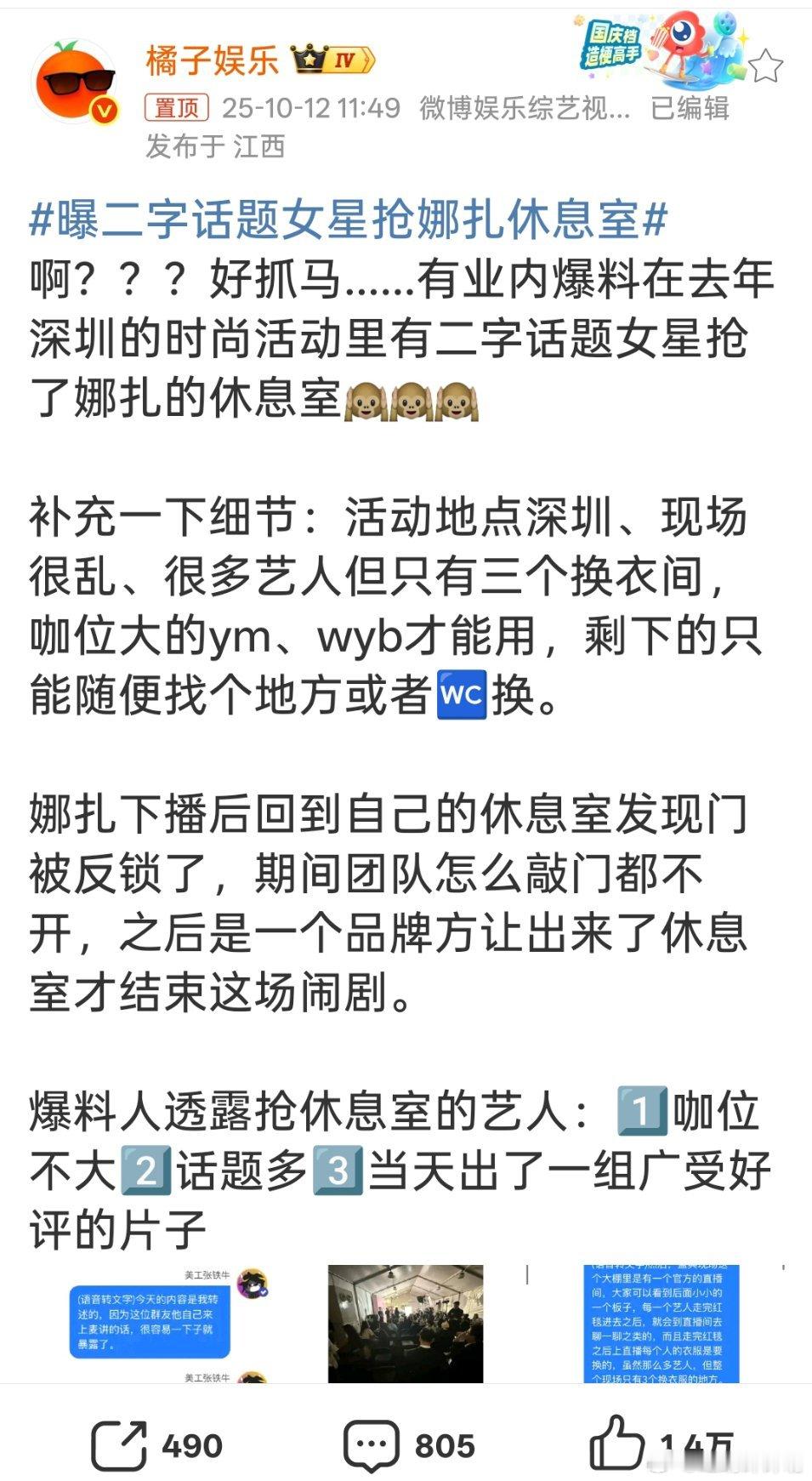 曝二字话题女星抢娜扎休息室左看右看都是活动组织者的错啊,我们女的要想美美收拾一下