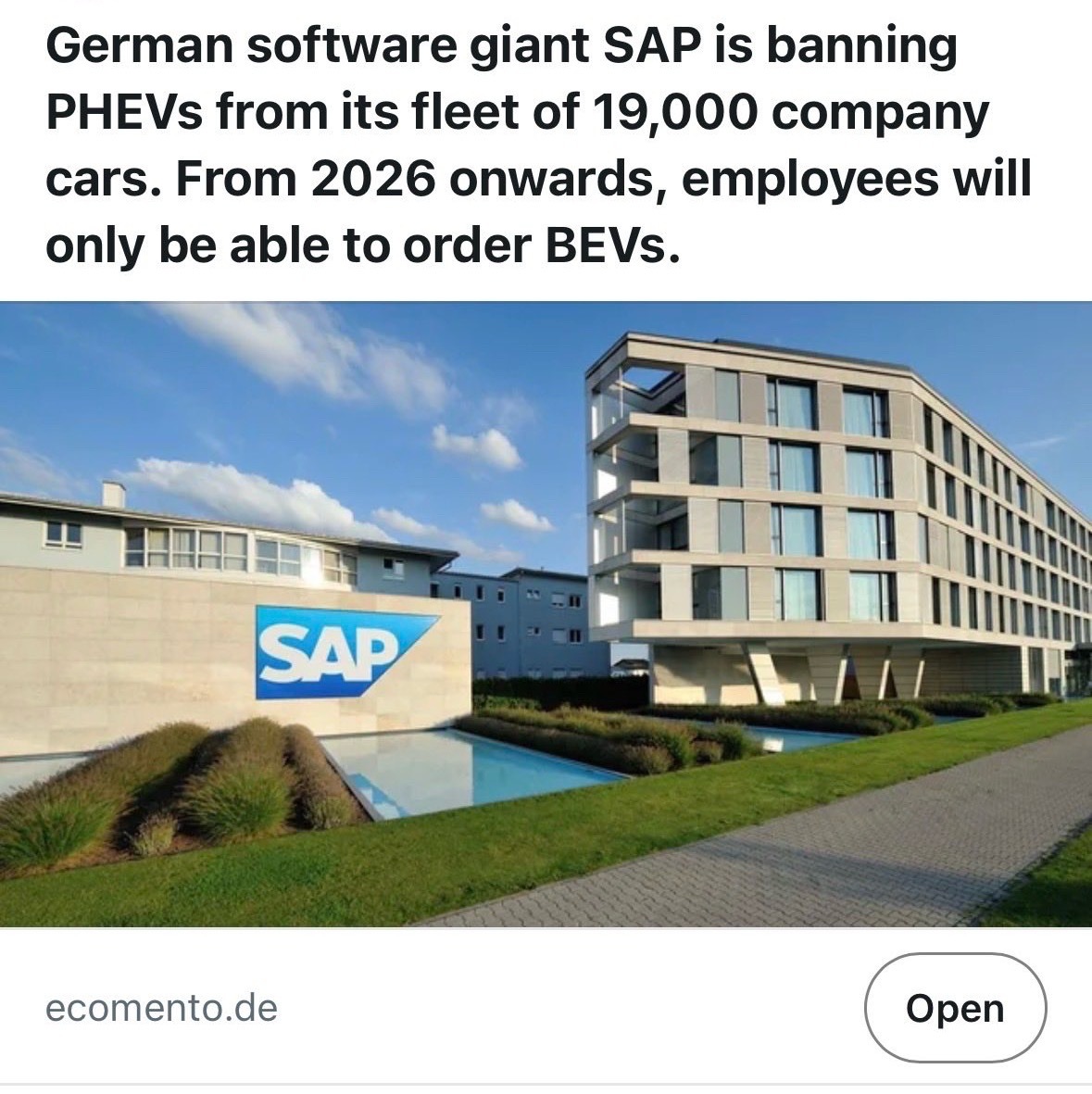SAP这种大公司似乎想明白了,插电混动电动车是所有车型里最不划算的。