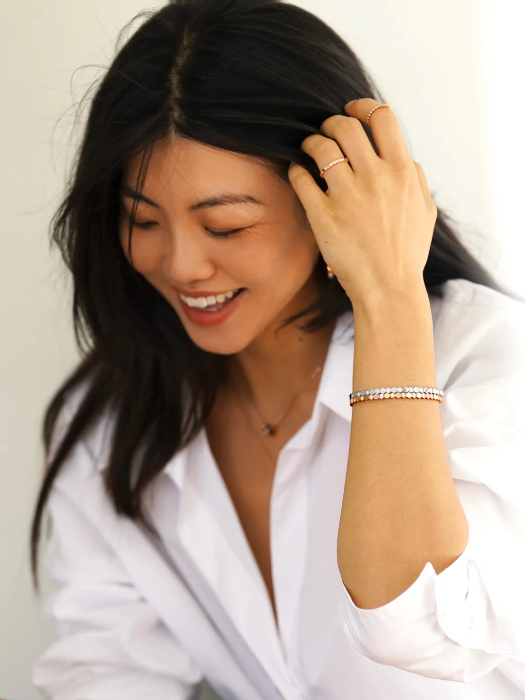 我喜欢把它叠戴在颈间和腕间