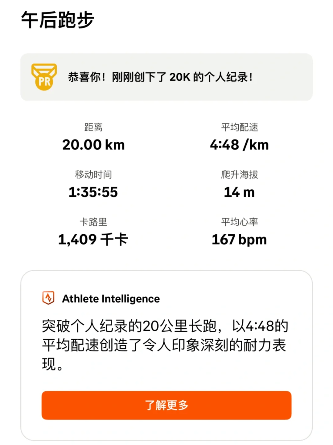 天气不错🏃🏻♂️四分配跑个20公里热热身