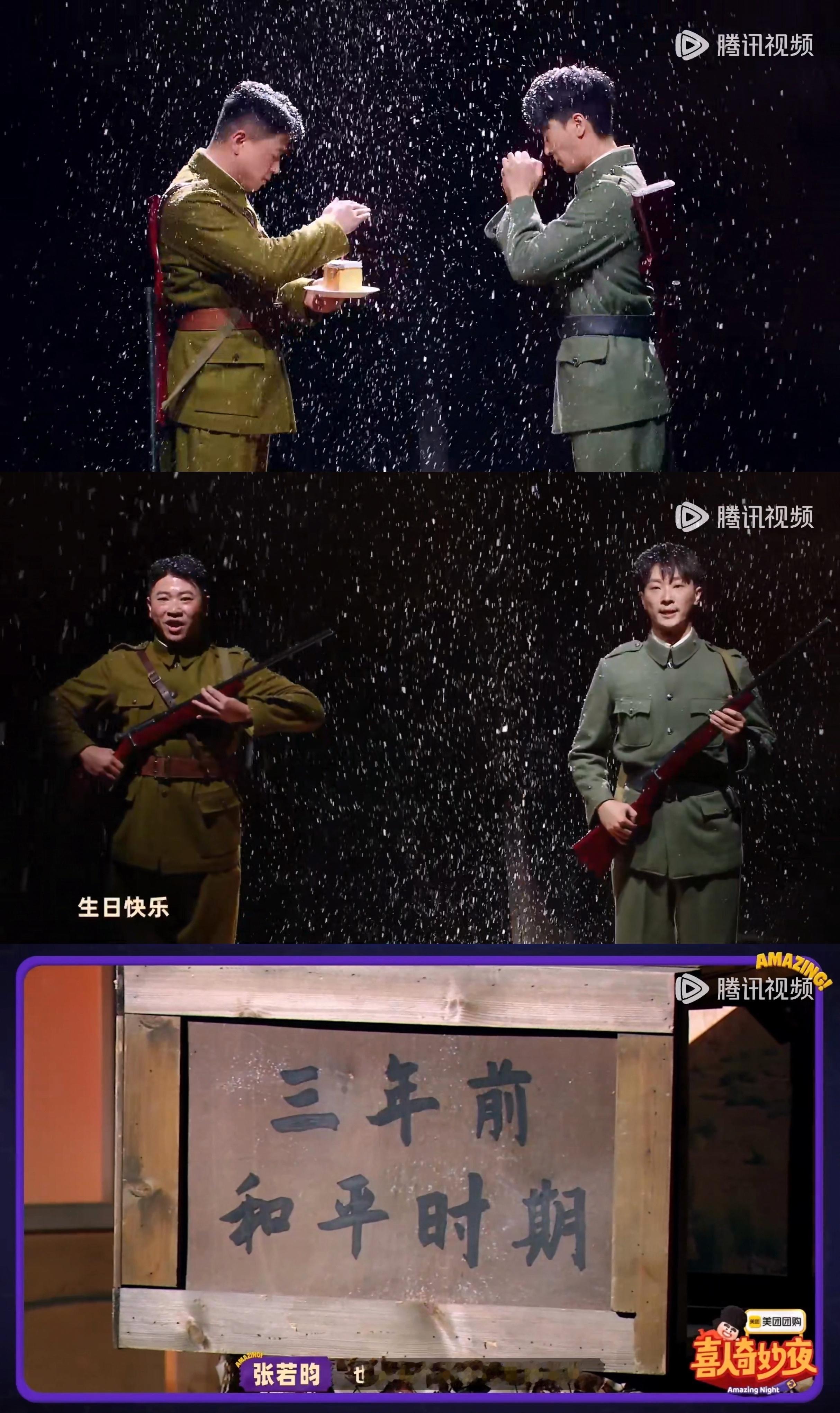 张若昀跑步上台敬礼这一下 喜人节目组请张若昀真是请对了!不仅对每部作品的解读细腻又独到,有爱也是大声说出来!在看完讲诉两名边境线士兵故事的《西线有战事》后,张若昀当场化身小哭包,表示被结尾“过生日许愿”这一设计深深打动[泪]等到小放光明上台参与talking环节时,他更是按捺不住喜爱,一路小跑上前,将每位观众仅有一张的“票上加票”特权送出,还特别标准的和杨班长来了一场敬礼互动,两人姿态端正,信念感十足,看来张若昀已经被这个作品中的故事深深感染,完全沉浸其中啦喜人奇妙夜