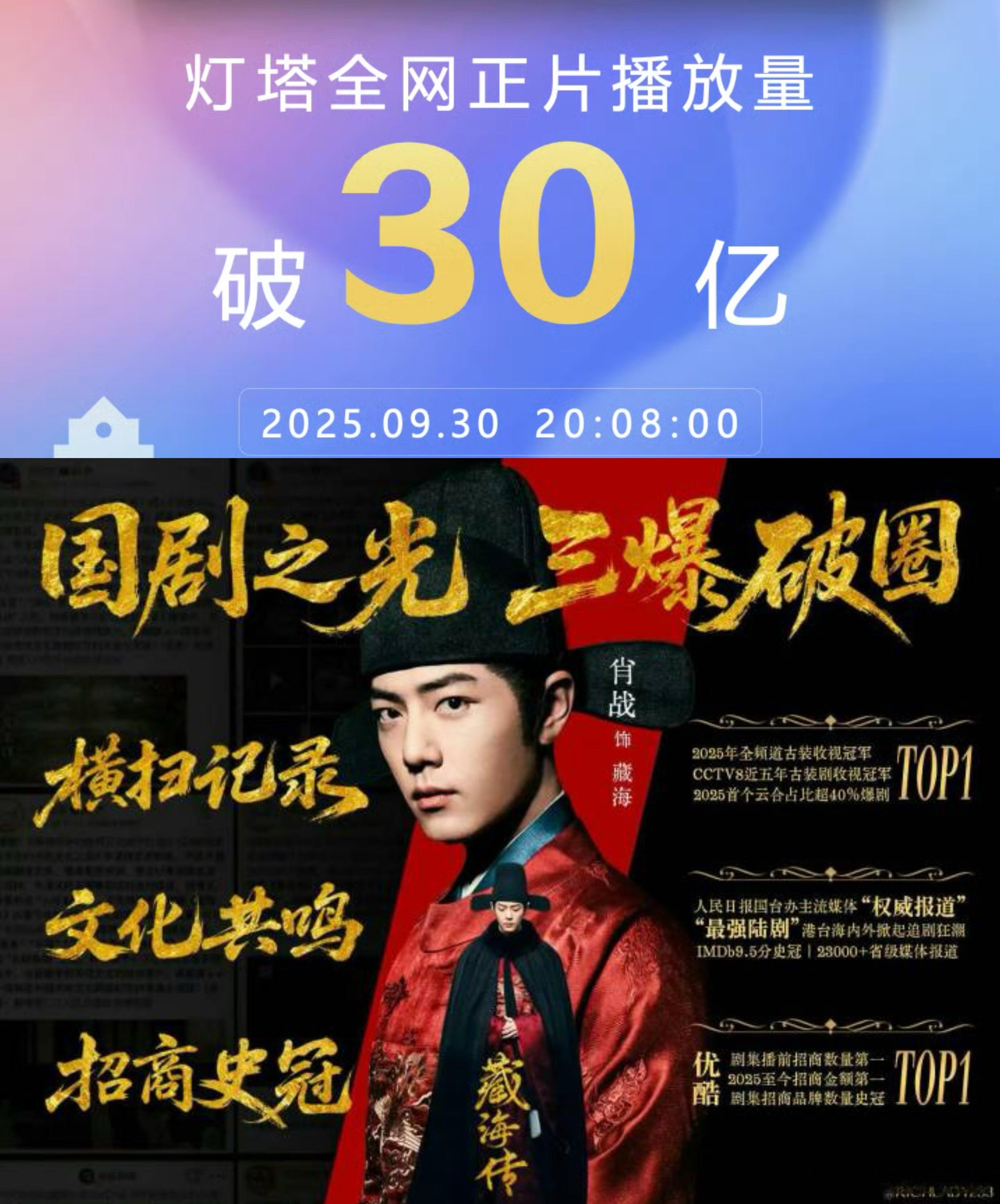 3️⃣灯塔播放量破30亿(今年第一且唯一),