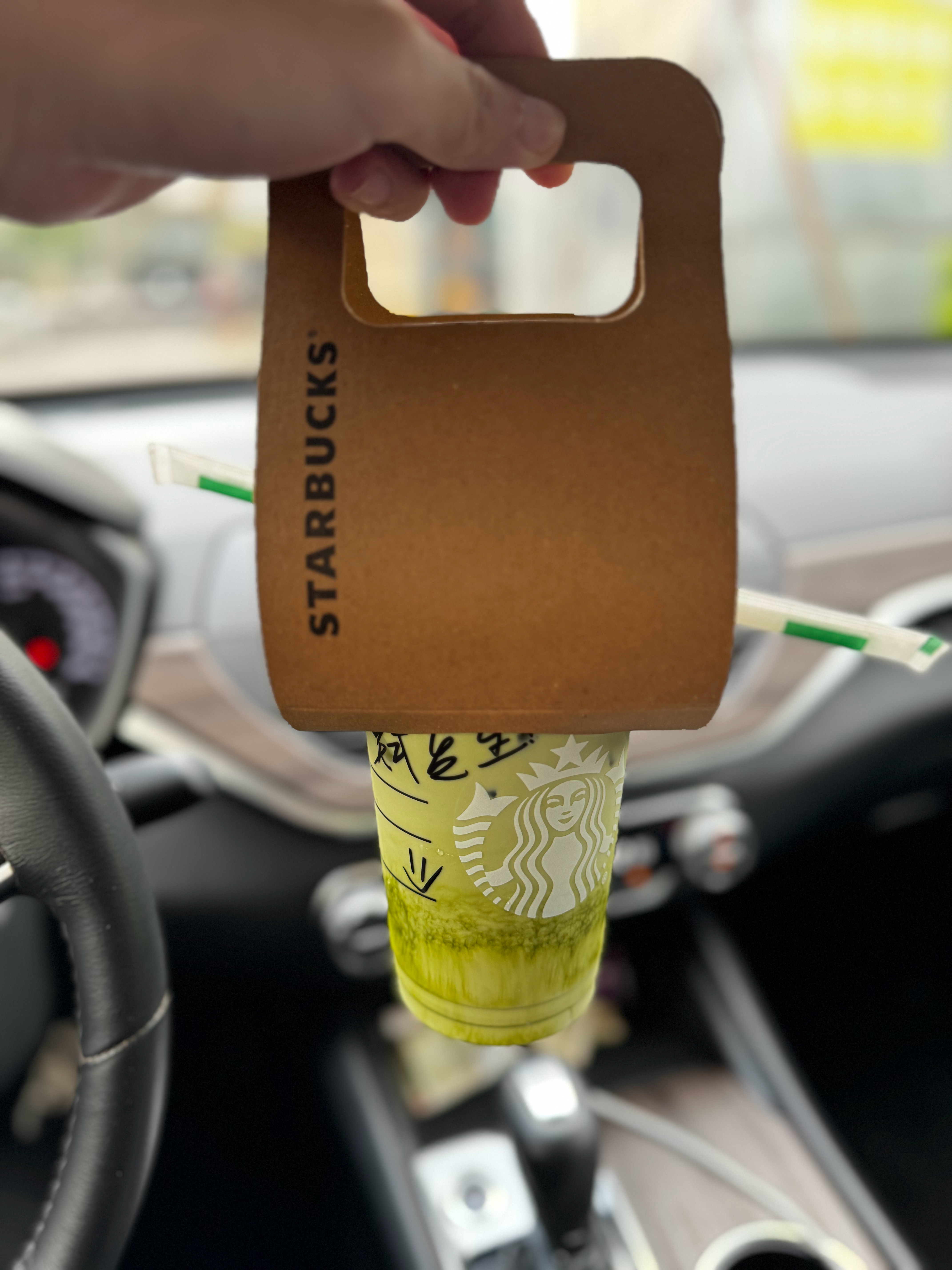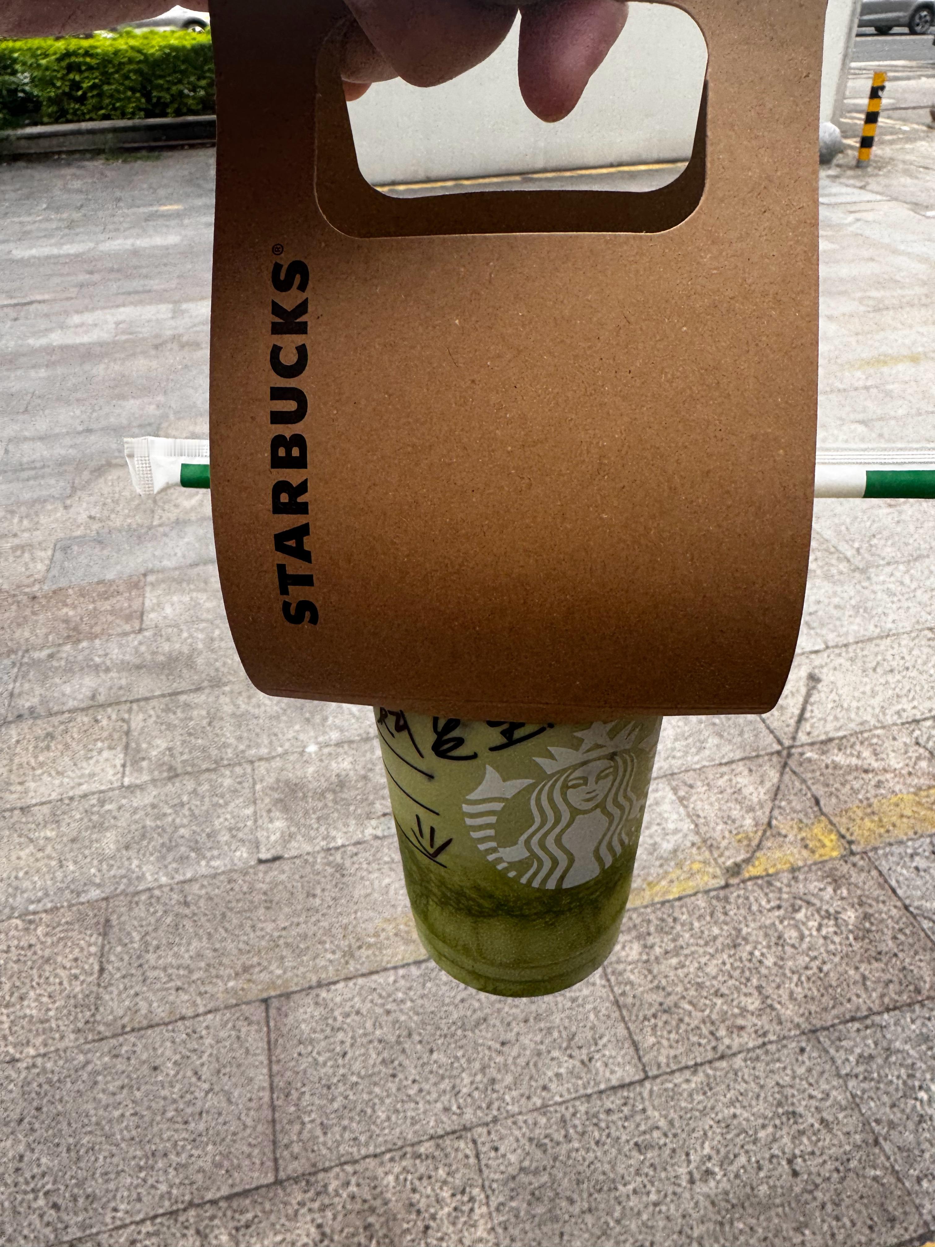 好多年没喝过星巴克了,今天特地来点一杯,还是超大杯,我怕我们这的星巴克我还没喝上就倒闭了,支持一杯延缓一下它倒闭的时间,不过这打包的造型挺独特啊,真怕它兜不住