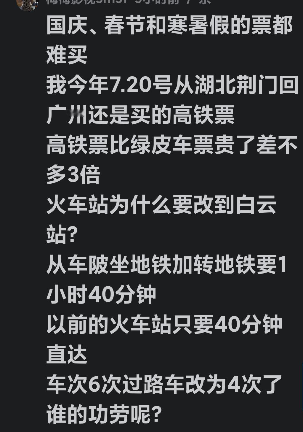 票高点就高点,可惜一到节假日车票就供不应求的。 节假日里就从未听说过高铁、动车、绿皮火车的车票好买的,即便提前购买也是如此。国庆与中秋连休共8天,火车票预售期为15天,9月16日开售9月30日车票,多地车票“秒光”。 就连省内粤东和粤西的车票也是这般紧俏,外省车票的抢购情况就更不必说了,就算建再多的高铁也一样,节假日都一票难求,高峰期过后就跌回冰点,为什么呢?