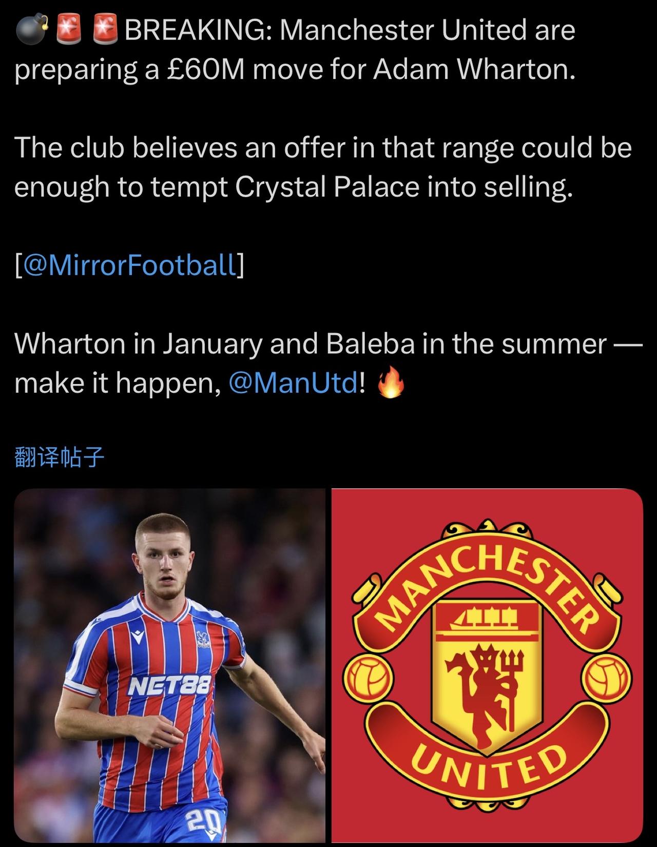 镜报消息,大家随便看看,别当真。 🔴突发新闻:曼联准备以 6000 万英镑的价格收购亚当·沃顿。 🔴俱乐部认为,这个范围内的报价足以吸引水晶宫出售。