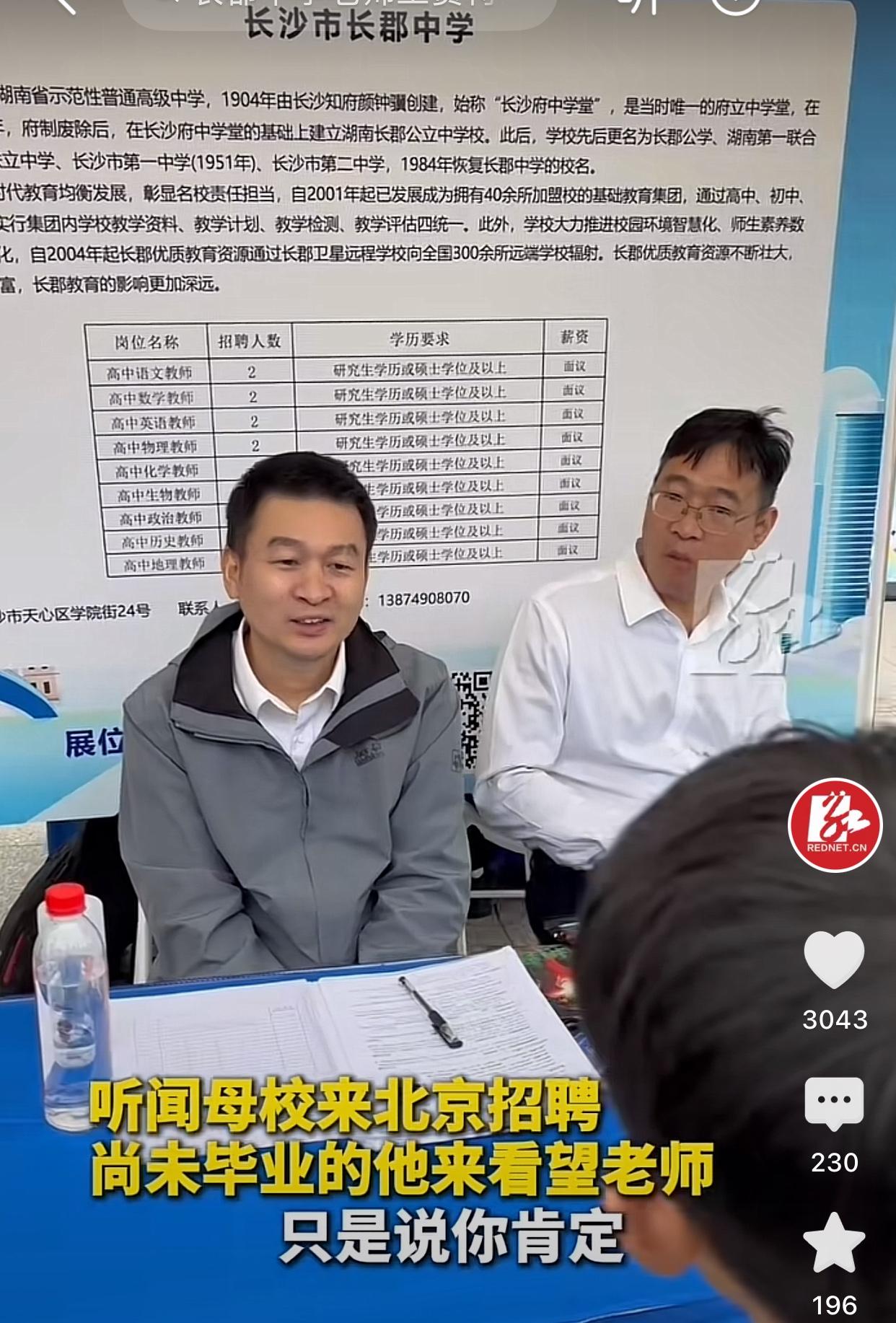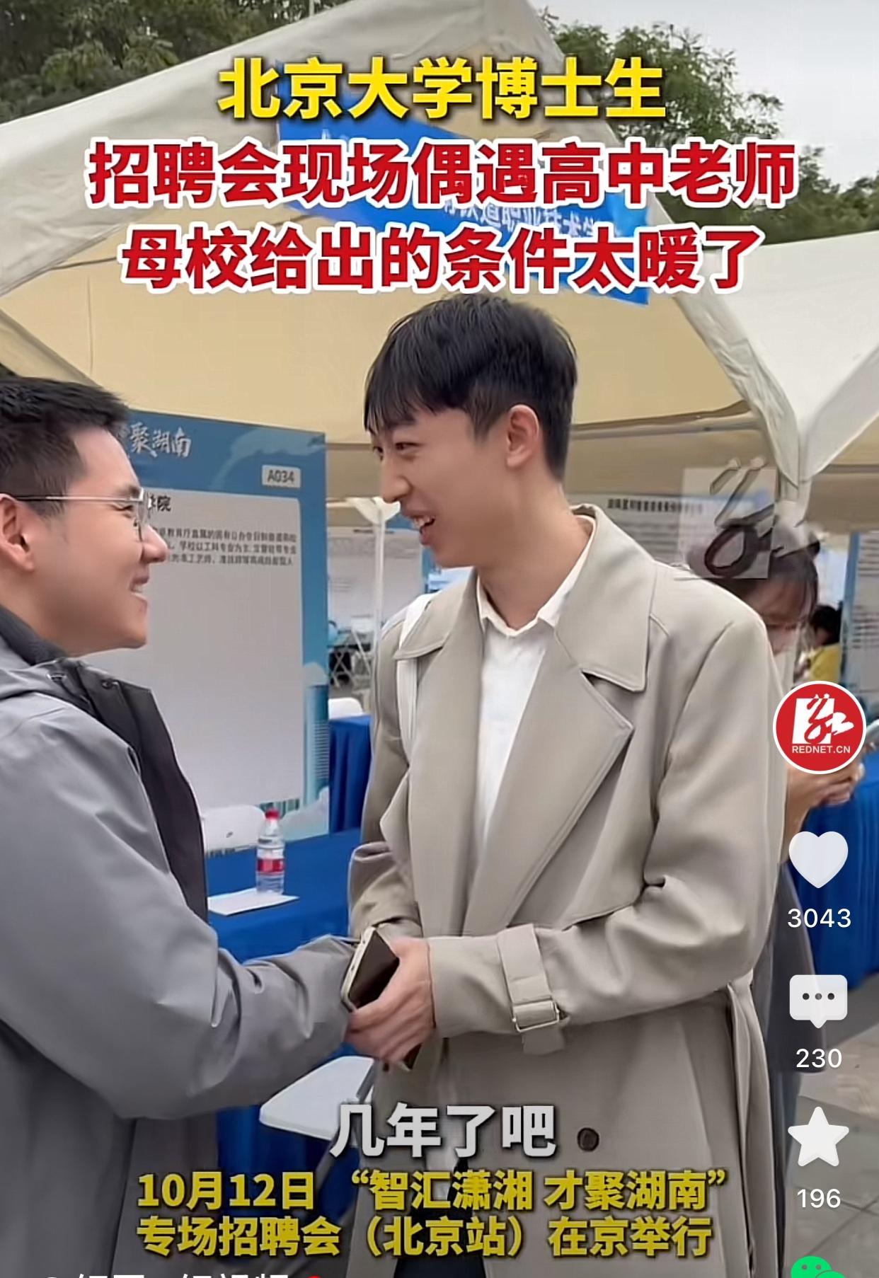 北大博士生招聘现场偶遇高中老师[赞]该男孩高中是在长沙长郡中学,当日该中学来到了