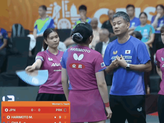 10月12日印度亚锦赛团体赛 日本女团一朝鲜女团 很好奇日本女队主教练中泽锐 在激情指导张本美和时,是用日语还中文,他们俩可都是中国血统,要是讲中文在一旁为张本美和煽凉的桥本帆乃香可听不懂,可能是讲日语,首战没上桥本帆乃香,留着打中国队吗? 张本美和3一2车秀英 早田希娜2一3金琴英 朝鲜加油争取淘汰日本