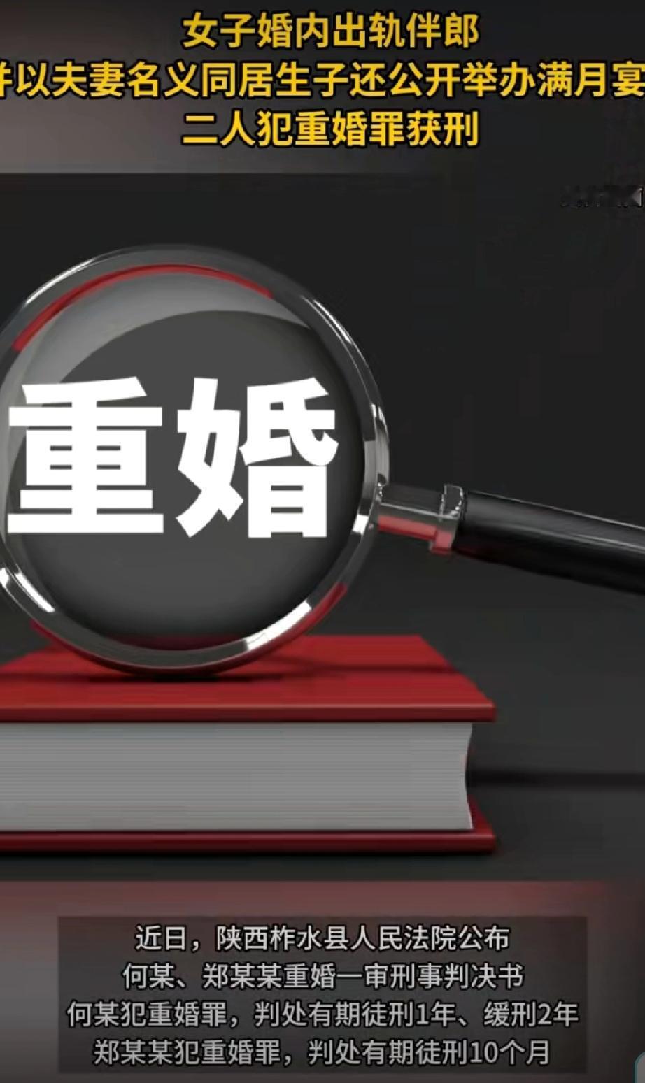 活久见。婚内出轨伴郎并且同居甚至还生了娃,还真是不断刷新着三观。 近日,陕西柞水县人民法院宣布了一个判决,判决何某犯重婚罪,判处有期徒刑1年、缓刑2年;郑某某犯重婚罪,判处有期徒刑10个月。 事情的经过主要是何某的丈夫常年在外务工,20多岁的她便出轨自己结婚时的伴郎郑某某,而二人不仅对外以夫妻名义共同生活,后续甚至还生育了一子,并专门为孩子举办满月宴。 还真是防火防盗防兄弟啊,虽然不是男方单方面的错误,但是遇到这种行为,不应该制止对方,并且保持一定距离吗?居然还苟合在了一起!说到底还是出轨的代价太低了,不过该女子做了这么多离谱的事情,她老公居然毫不知情,知道的是新闻,不知道还以为在拍短剧呢。在外面挣钱固然重要,还是不能忽略了在家妻子的感受,毕竟现在外面诱惑太多,信息交流又太简单,我们还是应该有最基本的道德底线才是!