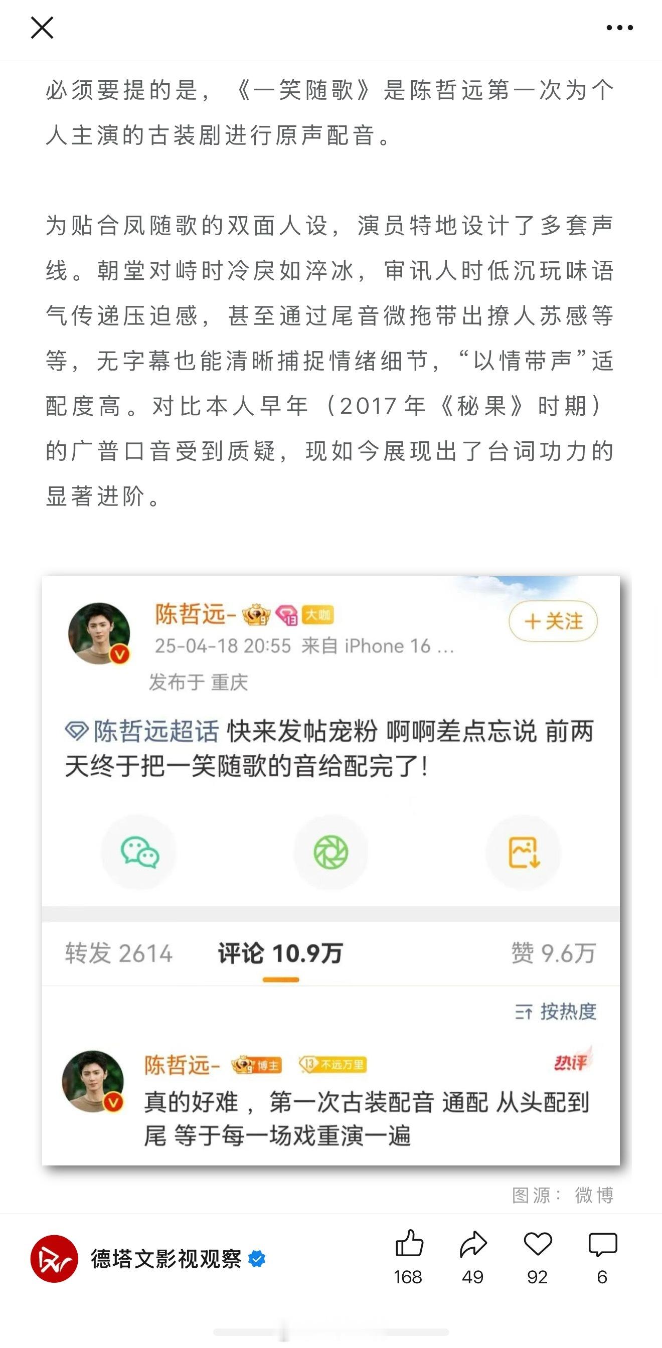 德塔文发文,《一笑随歌》热播,陈哲远颠覆演绎玉面阎罗