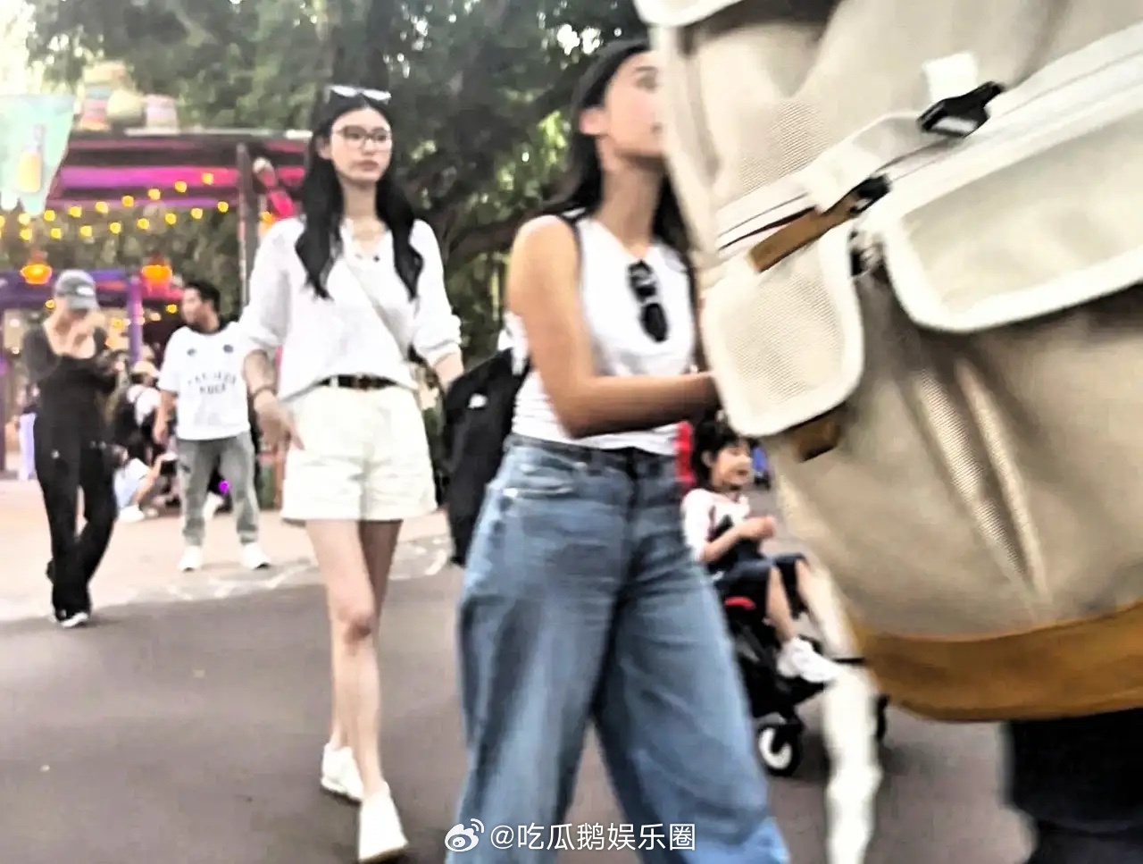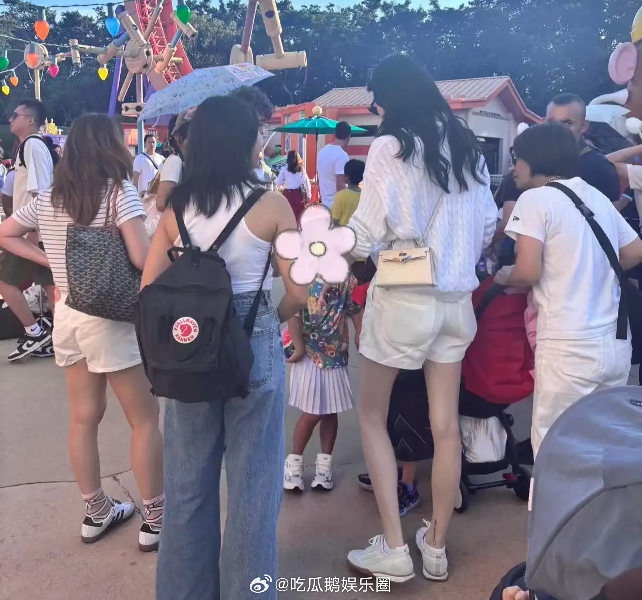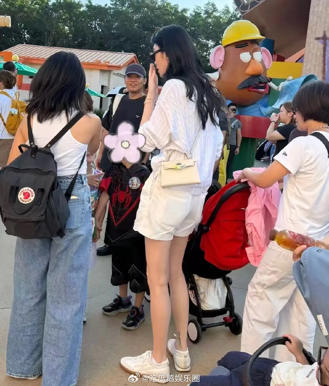 奚梦瑶带娃到香港迪士尼去玩,她又高又瘦,皮肤也白,超级亮眼!不得不说,有钱人养娃