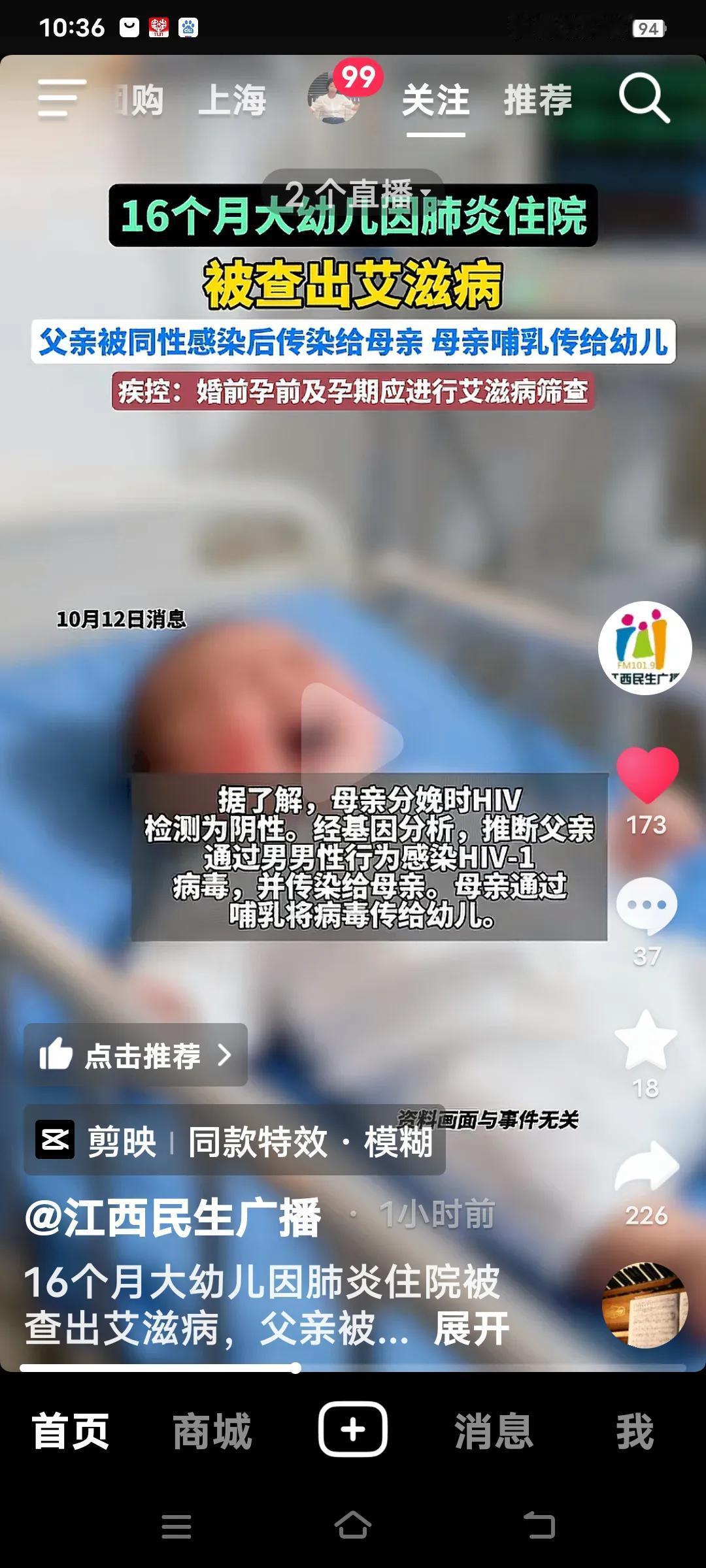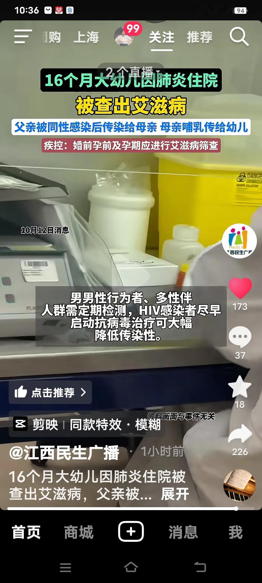 这真是在胎盘里就带的病毒了没办法了,竟伤害到无辜之人。这孩子可倒了大霉,怎么摊上这么个父亲啊? 近日,柳州市疾病预防控制中心公布了一则案例:福建一名16个月大的幼儿因支气管肺炎住院,被查出患有艾滋病。随后,其父母去检查,也确诊感染。 医生推断:父亲通过男男性行为感染HIV - 1病毒,并传染给母亲,母亲又通过哺乳将病毒传给了幼儿。 看来婚前检查真的至关重要!这小孩可遭罪了。要是早知道有病毒,是不是可以晚些再要孩子呢?这种情况真是首例!只希望能治好孩子的病毒,让他少受些罪,把热度降下去才让人安心啊! 艾滋病 艾滋病感染者 艾滋病科普 艾滋病人数 儿童rsv感染