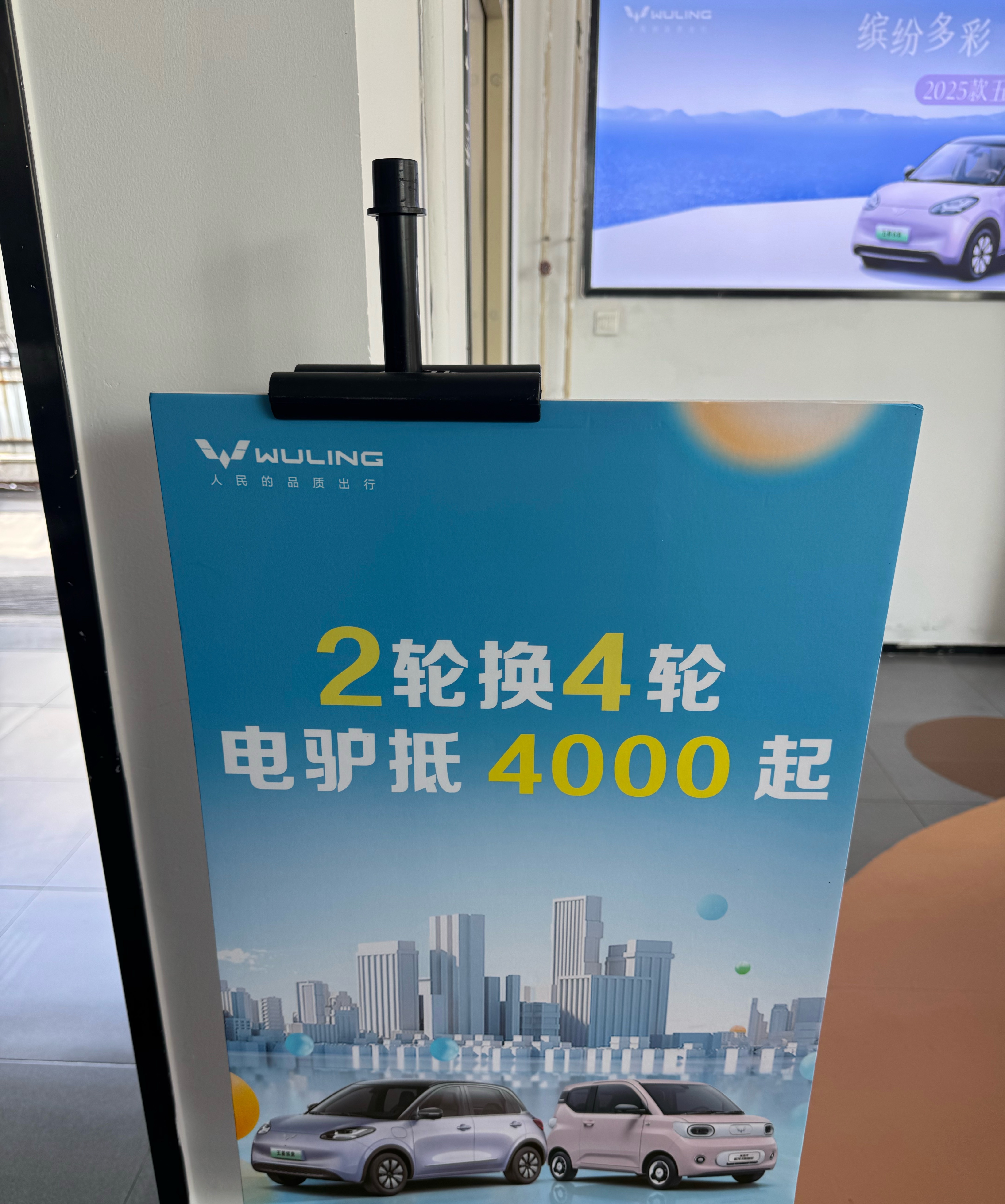 来五菱店里,看到宏光mini这个政策,2轮换4轮,能拿电驴置换。哈哈,精准拿捏了
