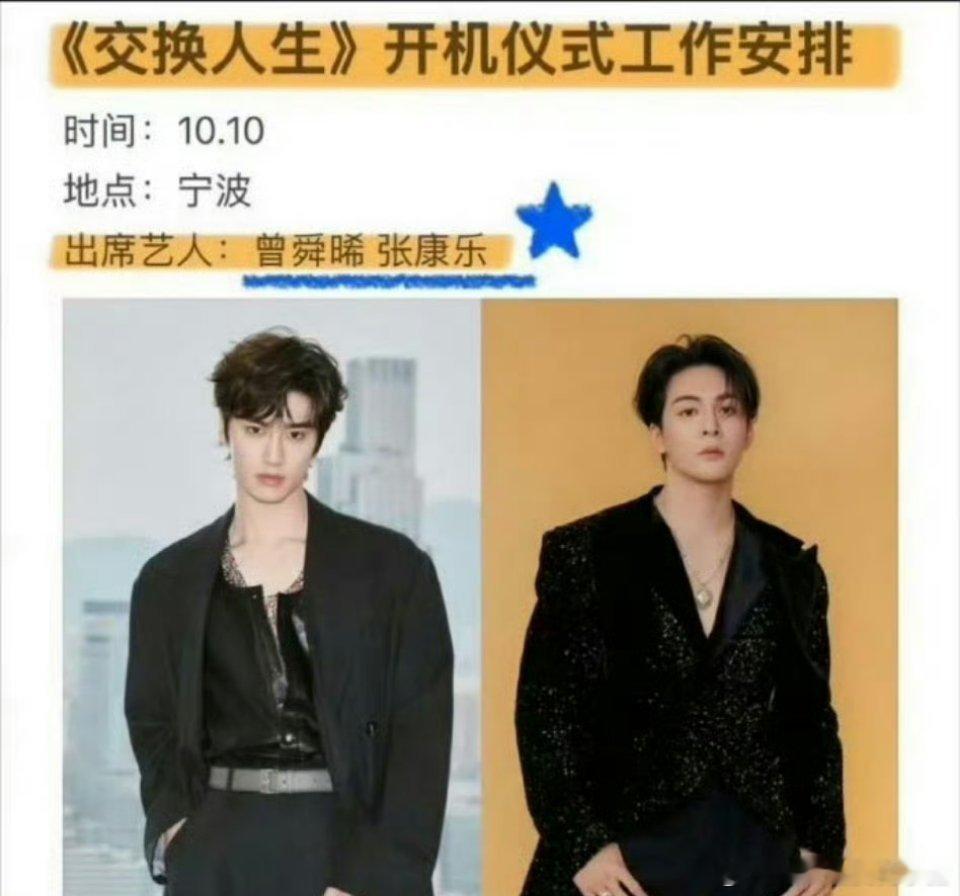曾舜晞张康乐交换人生开通官微,即将开机