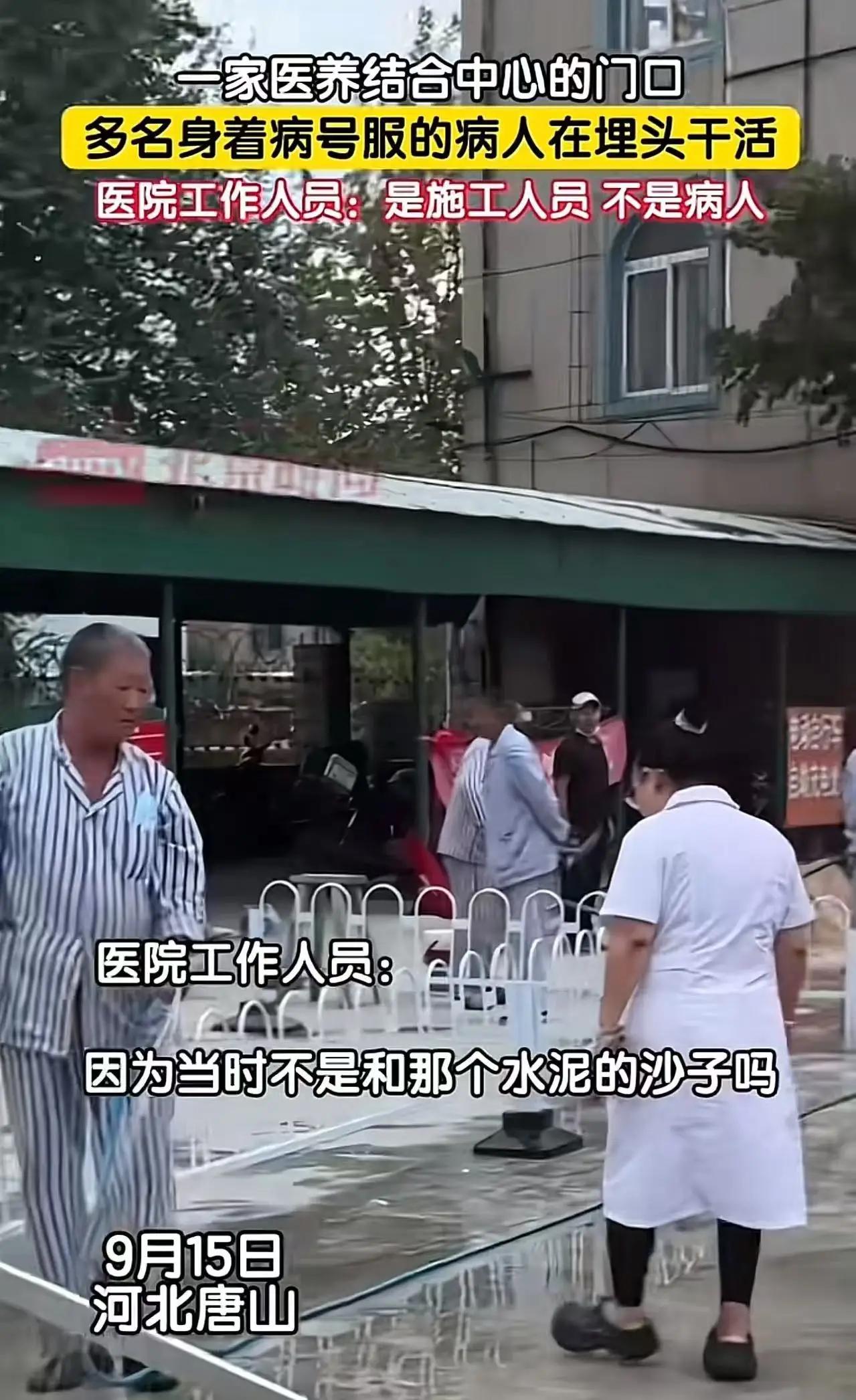 笑不活了!河北唐山,一家医养结合中心的门口,多名身着病号服的“病人”在埋头干活,网友炸锅,怒斥医院为了省钱让病人干活,可医院回应:“不是病人,是施工人员借我们的病号服在干活!”网友:第一次听说干施工队的怕身上弄脏的,真是旷古奇闻! 河北唐山,一家医养结合中心门口的场景瞬间点燃了网友们的热议:几名身着病号服的“病人”,竟然在忙碌着干活!这画面一出,立刻引发了网友们的愤怒和质疑:这难道是医院的“新招”吗?为了省钱、追求效率,竟然让“病人”变身“劳工”,难道医院的使命就是“让病人干活”? 然而,医院方面的回应更是让人大跌眼镜:“不是病人,是施工人员借我们的病号服在干活!”一句话似乎试图洗白一切,但这逻辑真是令人哭笑不得。难道施工队的工人怕脏,穿上“病号服”就可以变成“病人”混入其中?这不是荒谬至极吗?网友们纷纷吐槽:第一次听说施工队怕脏,居然会用“病号服”来伪装,简直是旷古奇闻!这背后隐藏的到底是什么?是医院的管理漏洞?还是某些人贪图小便宜的“聪明”? 细细想来,这一幕折射出的是社会的某种“怪象”。在追求经济利益的驱使下,某些单位为了节省成本,不择手段,甚至把“人性底线”踩在脚下。更令人心碎的是,病人本应得到最基本的尊重和关怀,却被变成了“工具”和“劳动力”。这不禁让人反思:我们的社会到底是为了什么?是为了人性尊严,还是利益的最大化?而那些在一线工作的“施工人员”和“病人”,又在这场利益博弈中扮演了怎样的角色? 这件事也提醒我们,每个人都不应成为“工具人”。无论身处何种身份,都应被尊重、被善待。更重要的是,监管部门要加强执法,坚决杜绝类似的“奇葩操作”。社会的良心不能被利益吞噬,人的尊严不能被随意践踏。我们期待,有一天,医院、施工方、监管者都能回归本心,把人放在第一位,而不是用“借病号服”这样的荒唐手段来“取巧”。 读到这里,你是不是也觉得心里堵得慌?我们都希望这个社会变得更好,更有人性。希望每个“病人”都能真正康复,每个“工人”都能被尊重,每个普通人都能在阳光下生活,而不是被当作“棋子”在利益的棋盘上随意摆弄。让我们共同关注,呼吁正义,让这个社会多一点温暖,少一点荒唐!河北医养结合