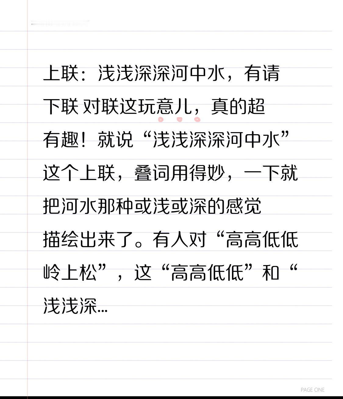 上联:浅浅深深河中水,有请下联对联这玩意儿,真的超有趣!就说“浅浅深深河中水”