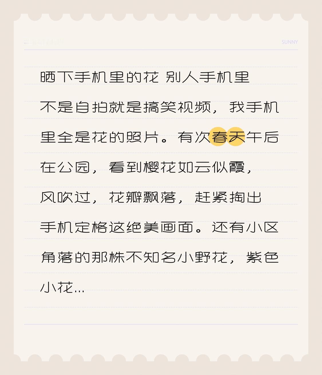晒下手机里的花 别人手机里不是自拍就是搞笑视频,我手机里全是花的照片。 有次春天午后在公园,看到樱花如云似霞,风吹过,花瓣飘落,赶紧掏出手机定格这绝美画面。还有小区角落的那株不知名小野花,紫色小花星星点点,在杂草中倔强绽放,随手一拍,平凡也成了独特。 我这些花照里,藏着四季更替,藏着生活小确幸。每一朵花都是一场相遇,每一张照片都是一个故事。你们手机里又有哪些花的靓影呢?