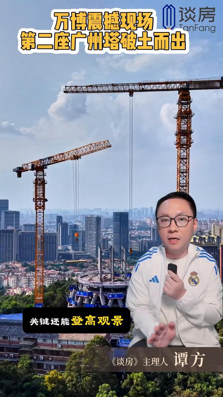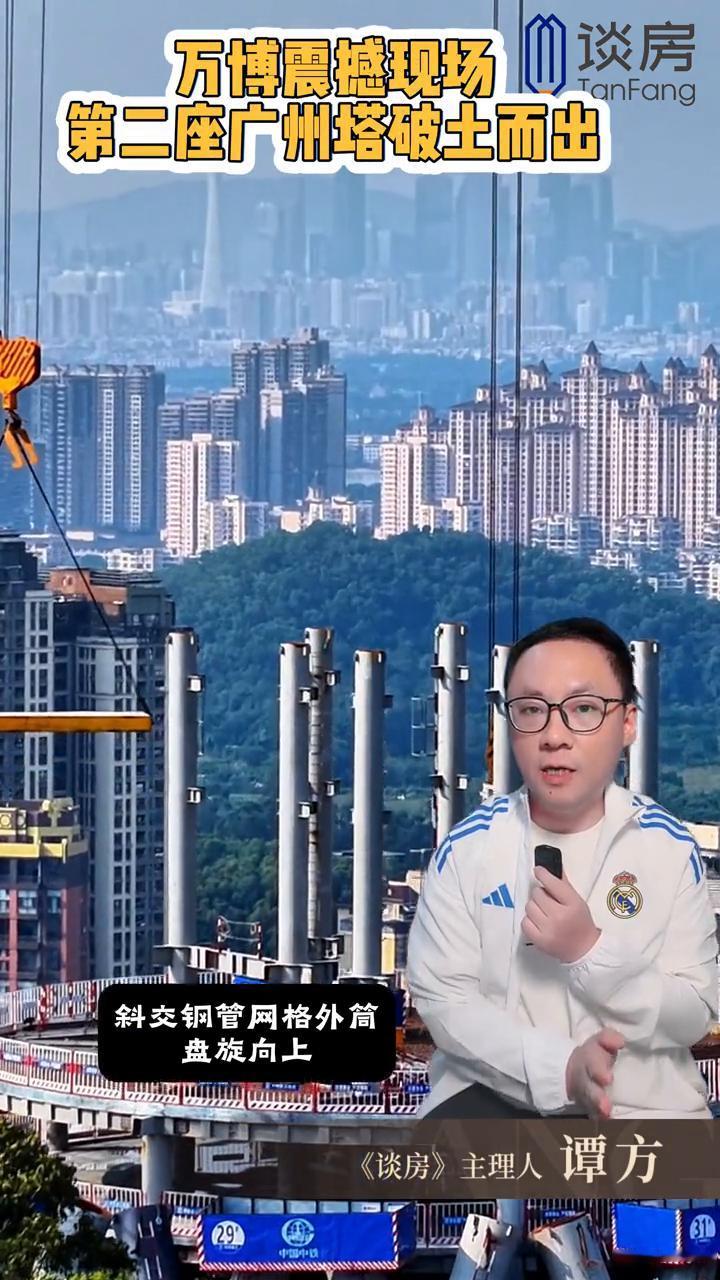 万博震撼现场:第三座广州塔正破土而出。 第二座广州塔正破土而出,斜交钢管网格外简盘旋向上,8根钢管混凝土核心内筒刺破青天。它就在广州南CBD番禺万博335米的大镇岗气象塔,这高度干翻周边所有建筑,妥妥广州前十。 塔身主体就有190米,和广州塔一样都是地标。看效果图,线形竖向肋条沿着塔身向上延伸,顶部还有颗气象观测球,夜晚星光瀑布美到窒息。它可不是花瓶,台风暴雨一来它就是华南天气哨兵,民航水利都得靠它。关键还能登高观景,未来散步就能打卡。更绝的是4公里外长隆还要建景观塔,双塔联动直接封神。 万博这波操作要把CBD再玩成顶流景区。