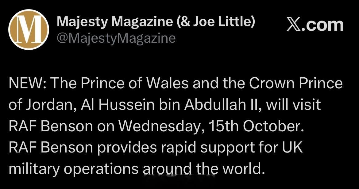 【预告】2025年10月15日,威廉王储和约旦的侯赛因王储将会在牛津郡访问英国皇家空军基地RAF Benson🚁🇯🇴