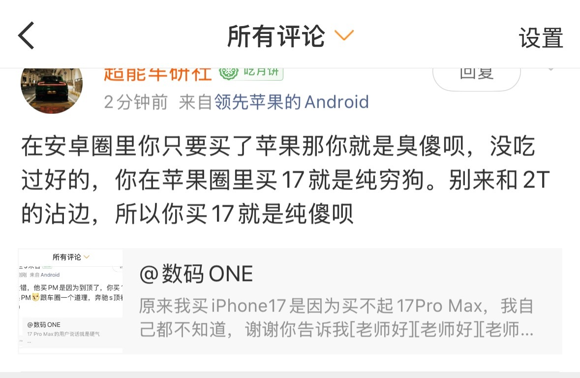 而且iPhone对于绝大部分人来早就性能过剩了,根据自己需求喜好和预算来就行,足够用的了,所以千万不要看到别人用iPhone17标准版就觉得人家买不起Pro系列(我是穷狗,我承认我破防了[doge])