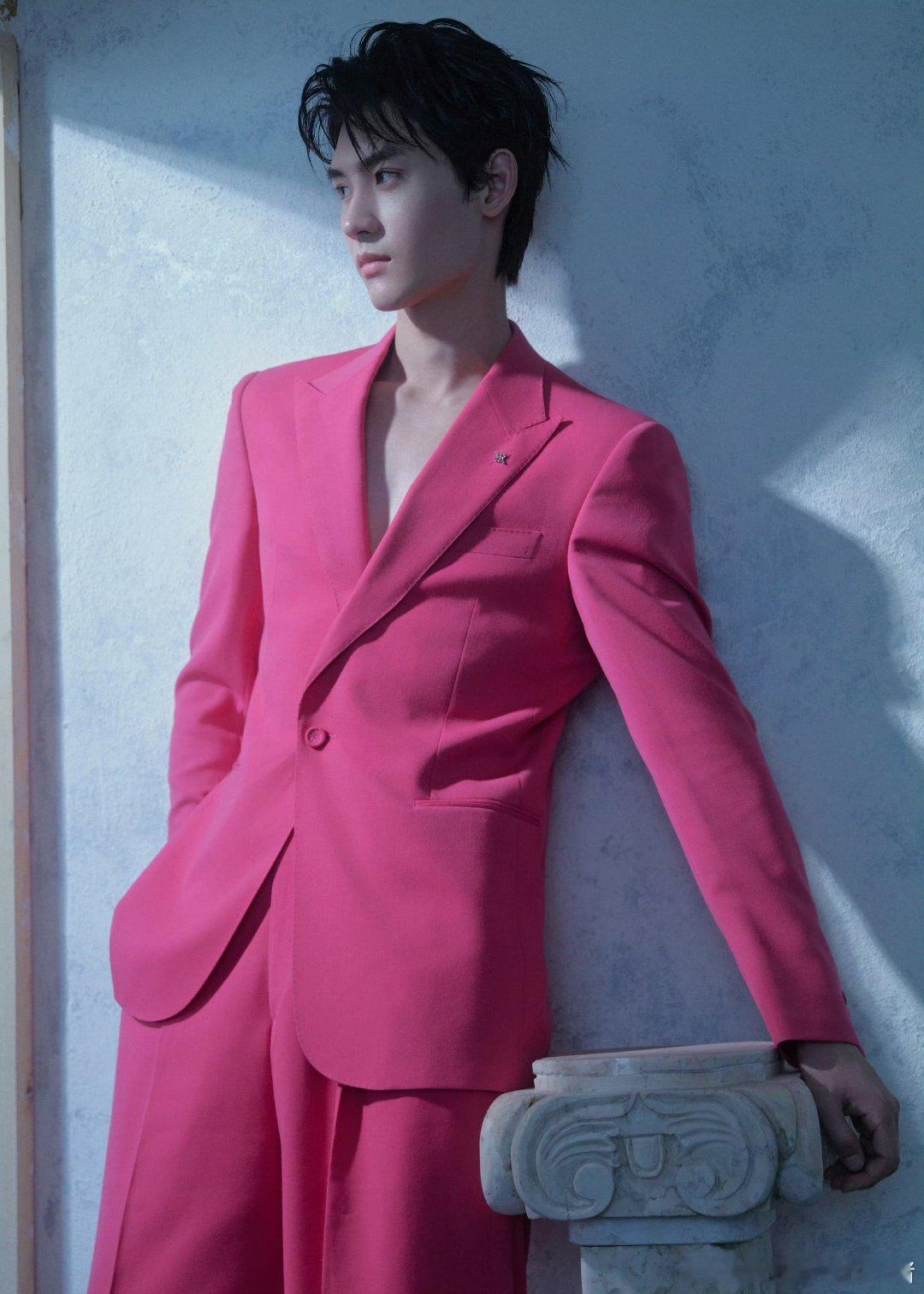 omg,黄俊捷粉色西装造型,还是真空的,太绝了[爱慕][爱慕]