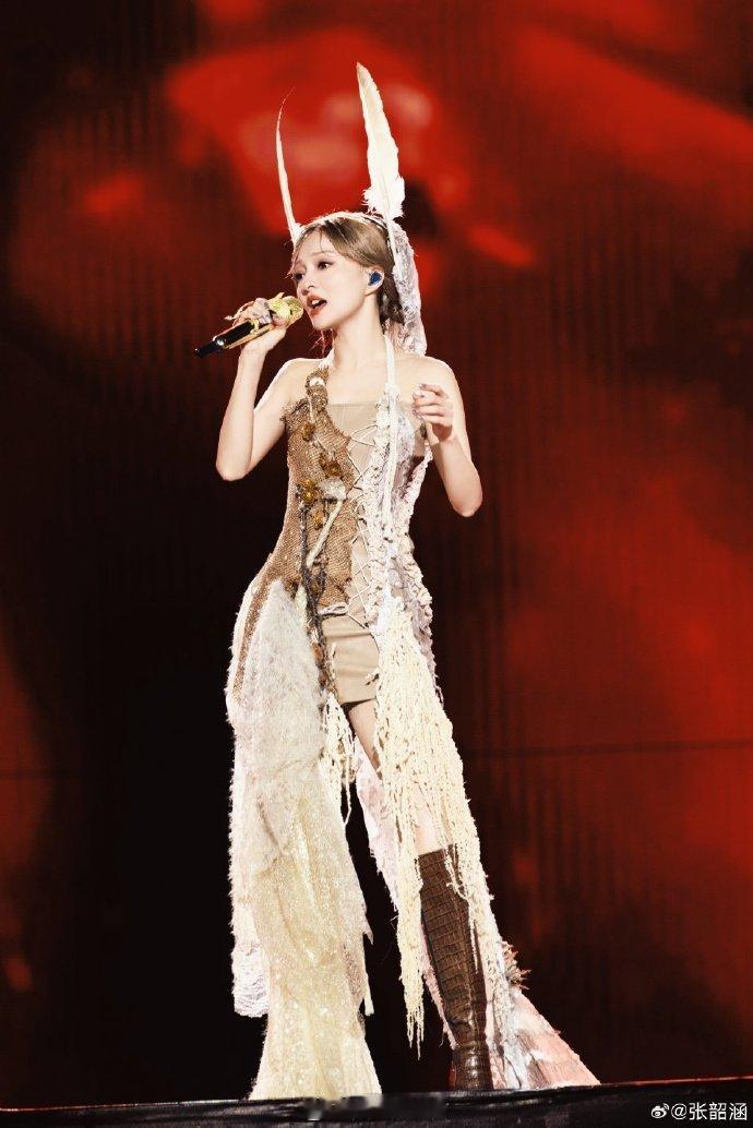 张韶涵治好了我的审美疲劳 当下审美太容易让人腻烦,可张韶涵却成了例外。她的舞台造型就像艺术杰作,充满奇思妙想,让我在审美困境中重获新鲜感。
