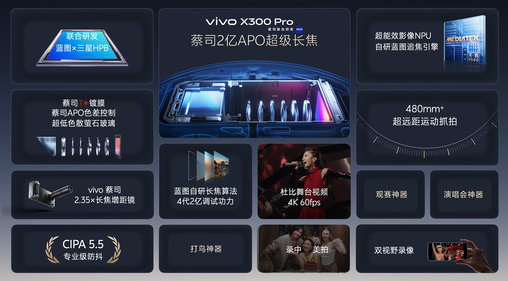 vivoX300系列发布会 vivo X300 Pro的长焦是瞄着其他家Ultra超大杯打造的吧,五大升级比之前更强,演唱会都已经不能满足它了,直接变口袋打鸟神器。