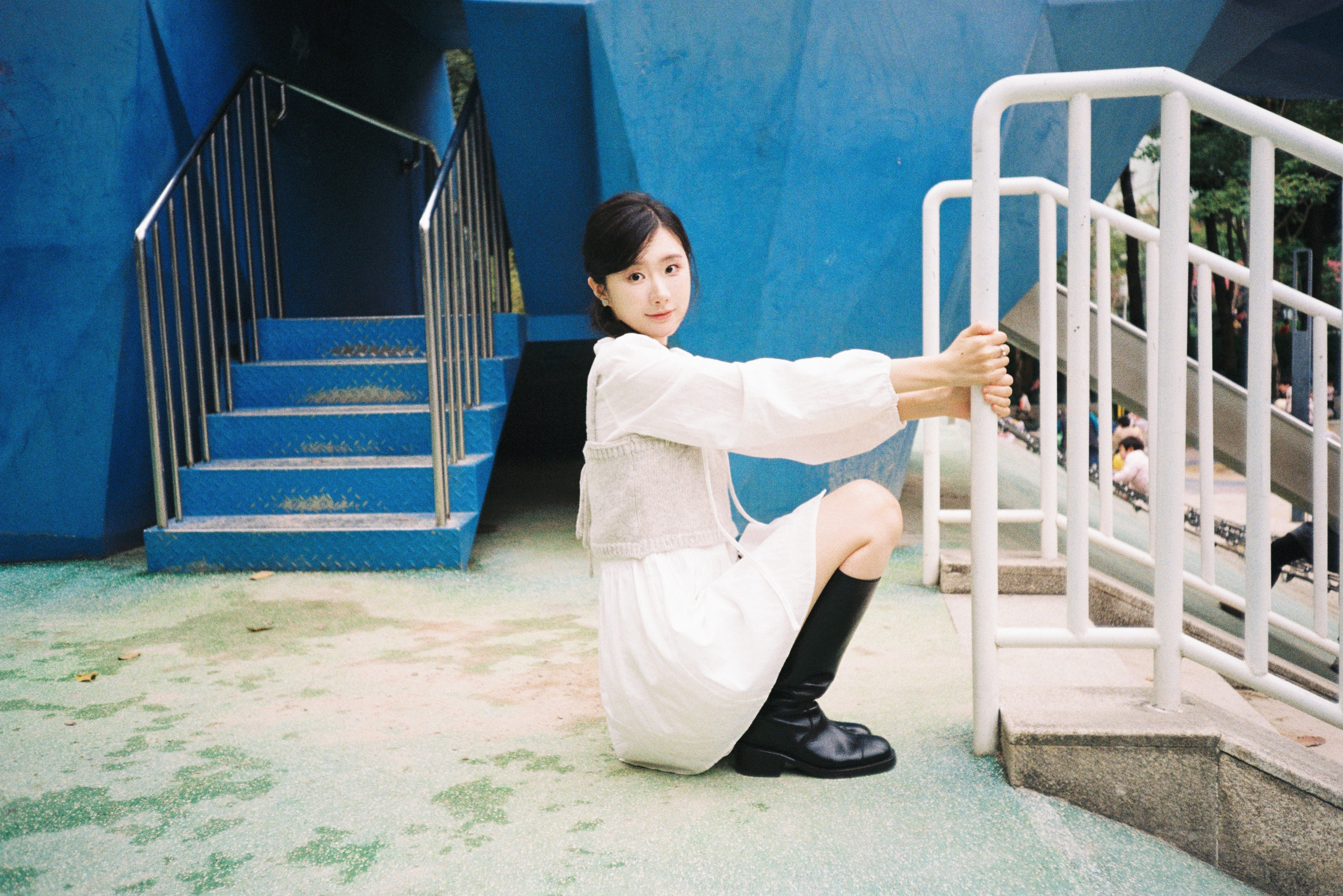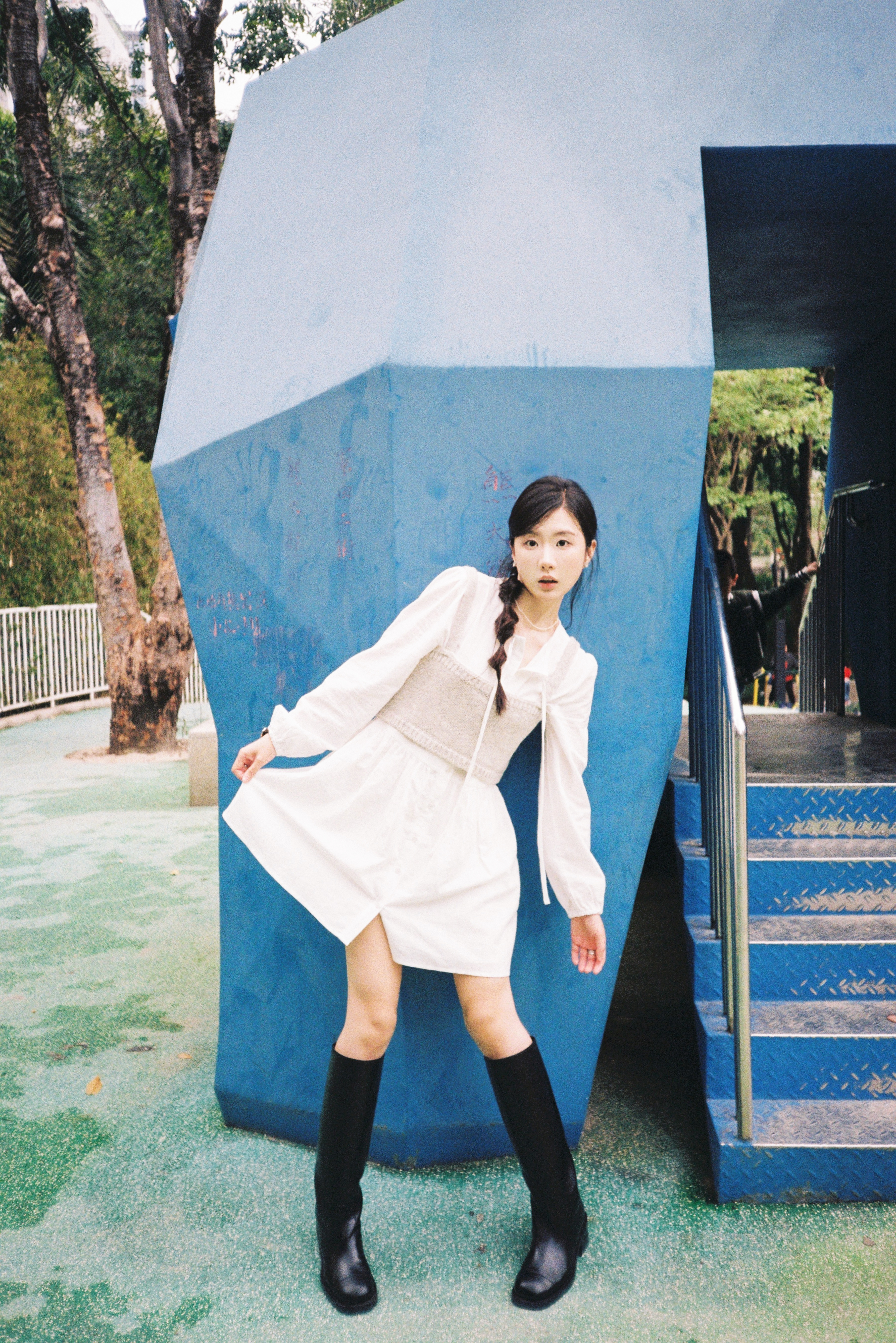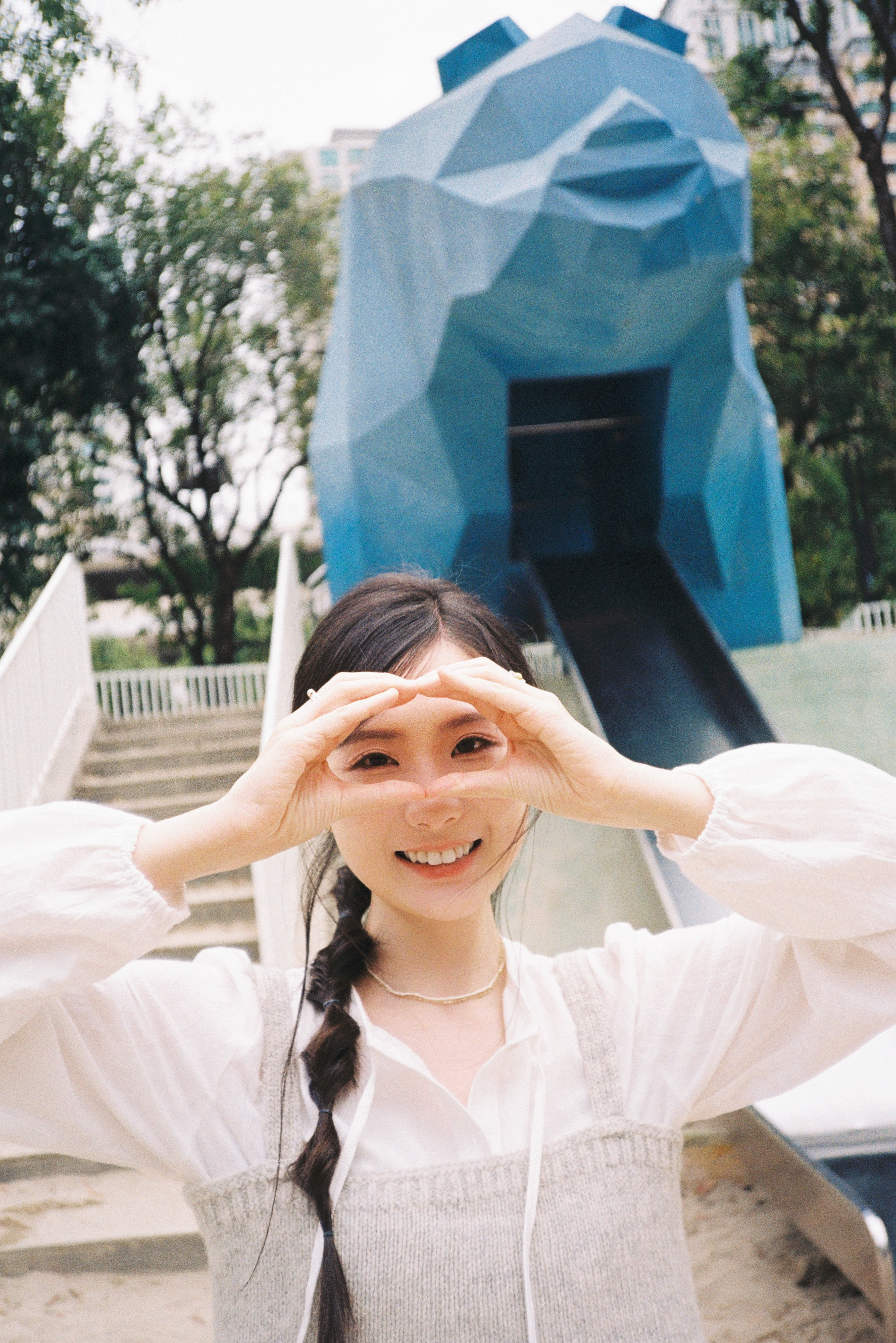 在有蓝色大熊滑梯的小游乐园🛝